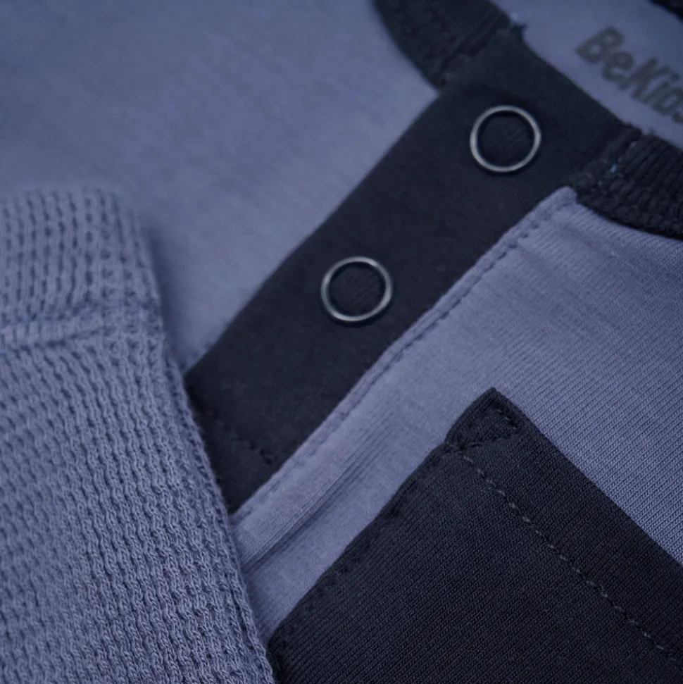 Praktisk og stilrent sæt fra BeKids bestående af en bodysuit med gammeldags knaplukning foran og matchende leggings med sort ringning. Fremstillet i blødt bomuld, der er skånsomt mod barnets hud og giver en behagelig pasform hele dagen. Et perfekt sæt til både hverdagsbrug og leg.