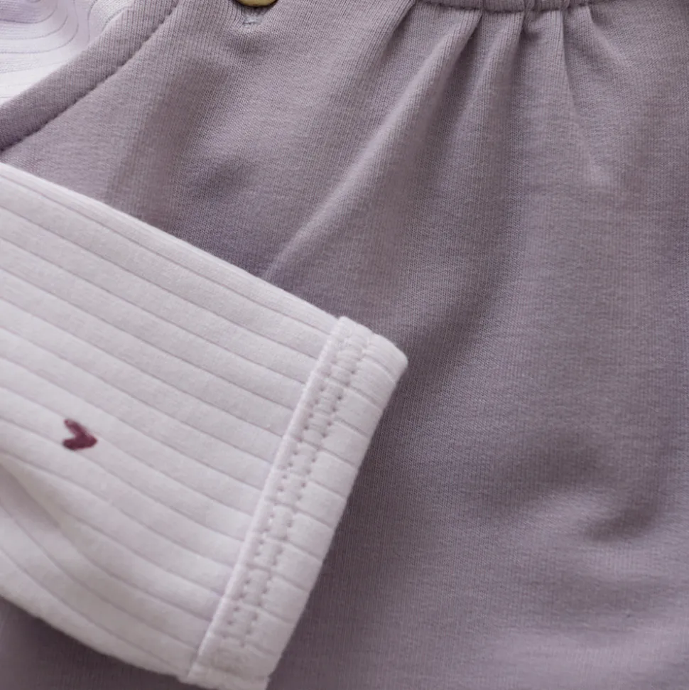Sæt fra FIXONI bestående af en body og en romper i blød kvalitet. Bodyen har et fint all-over-print og lukkes med praktiske trykknapper på skulderen og mellem benene, hvilket gør den nem at tage af og på. Den matchende romper i sweat-materiale har knapper foran og trykknapper mellem benene for nem adgang ved bleskift. Begge dele er lavet i en blød og behagelig kvalitet, der føles skånsom mod barnets hud.