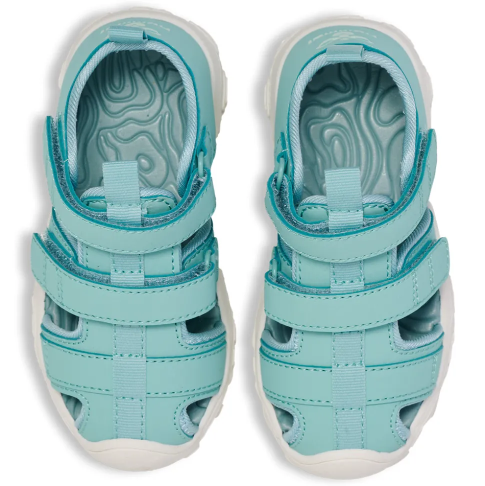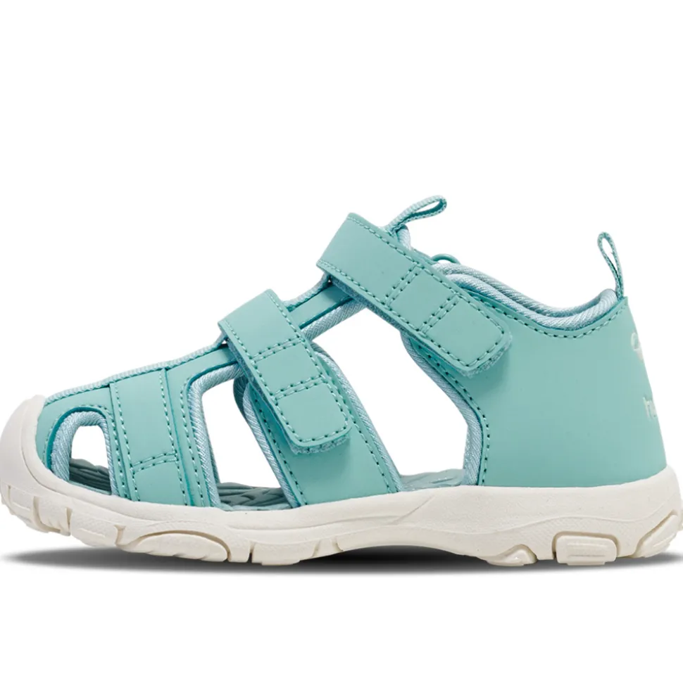 SANDAL VELCRO INFANT er en praktisk style til nye gående. Denne hummel® sandal er designet med lukket tå for at beskytte små fødder og konstrueret med en overdel i mikrofiber og tekstil. Den har en behagelig gummisål og fastgøres med velcrobånd, så den er hurtig og nem at tage på.