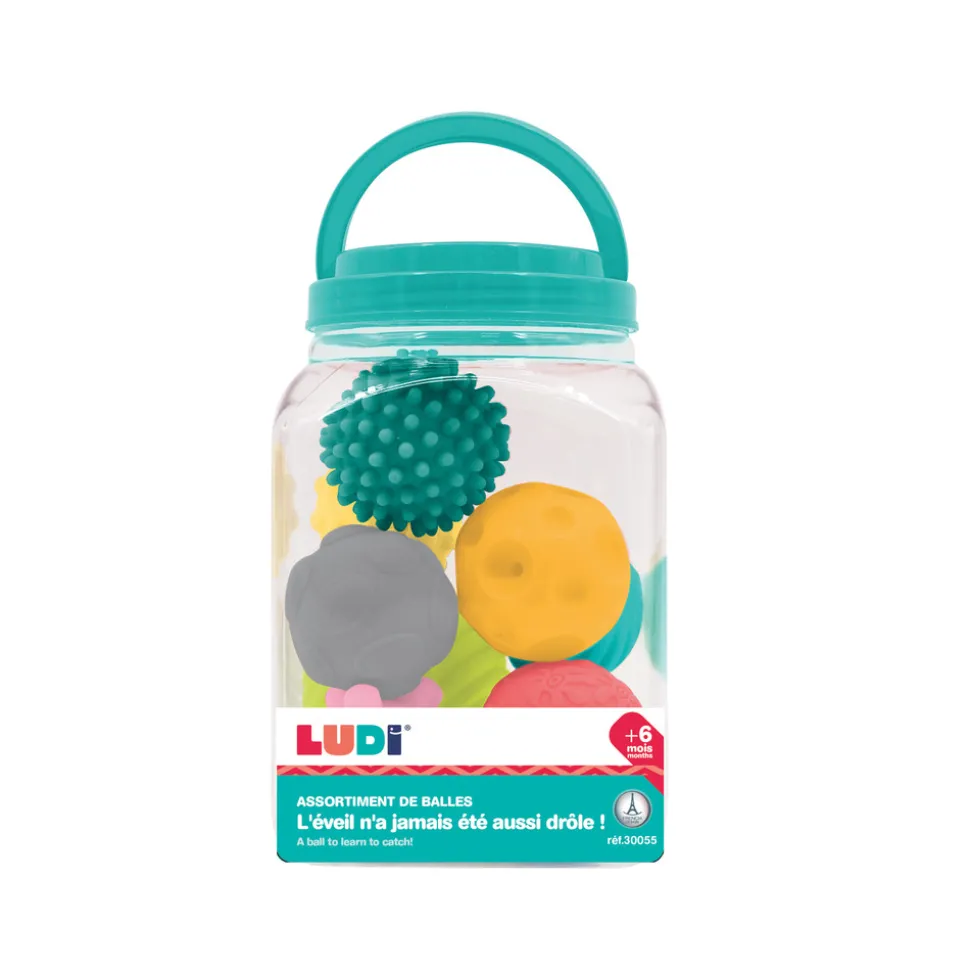 Det specielle ved disse bolde er, at de alle har forskellige overflader og giver barnet forskellige sanseoplevelser. De stimulerer barnets sanser og er sjove at udforske og lege med. De kommer i en gennemsigtig krukke, hvor de kan opbevares efter brug eller hvis man vil have dem med på eks. ferie.