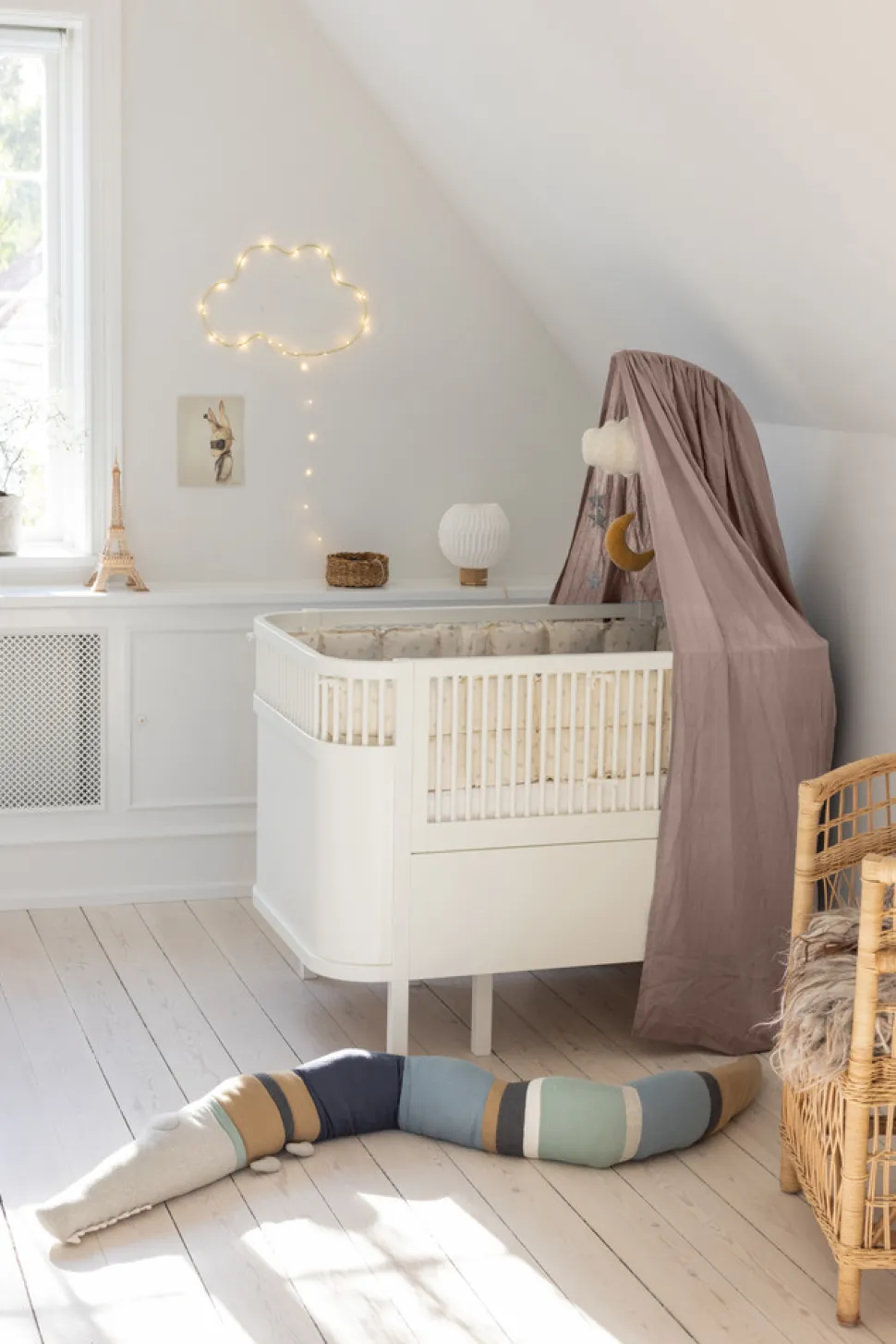 Bemærk venligst: Sebra Uroholder skal tilkøbes. Ønsker du at montere en uro på uroholderen sammen med sengehimlen, kan du klippe et lille hul i stoffet, som vist på videoen.
