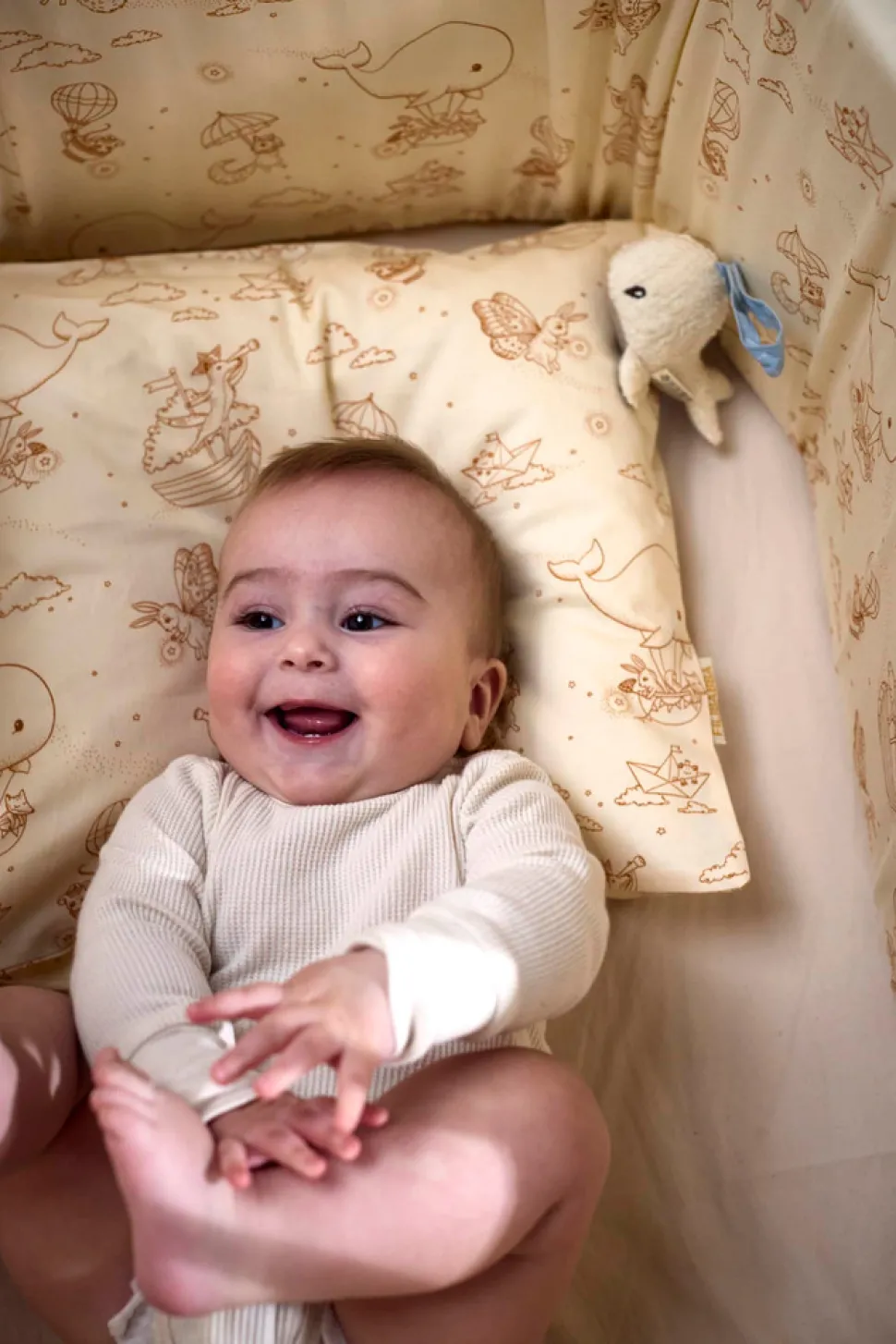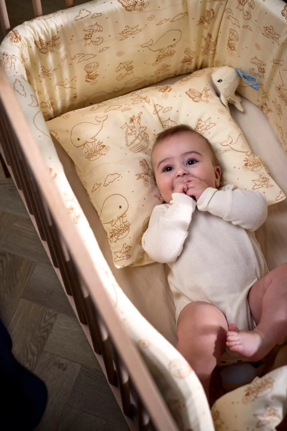 Forældre bruger meget tid på at hjælpe vores kære små med at falde i søvn, og findes der egentlig en bedre måde at slutte dagen på end at blive puttet ned i små glimt af glæde med et kys? Sengerand er designet til at skabe en hyggelig stemning i enhver krybbe og tremmeseng. Hvis din seng er mindre, skal du blot lægge sengerandens ender over hinanden. Den 4 cm tykke polyesterskumkerne hjælper sengeranden med at stå oprejst, så du ikke skal fastgøre den til sengen med f.eks. bånd. Derudover sikrer den ekstra tykke kvalitet, at din baby ikke slår hovedet ind i sengens hårde tremmer. Den integrerede lynlåsfunktion hjælper dig med at tage betrækket af, så du kan vaske det efter behov. Husk at trække betrækket i form og putte det direkte på skumkernen efter i vask. Lad betrækket tørre på sengeranden for at mindske risikoen for, at det krymper.