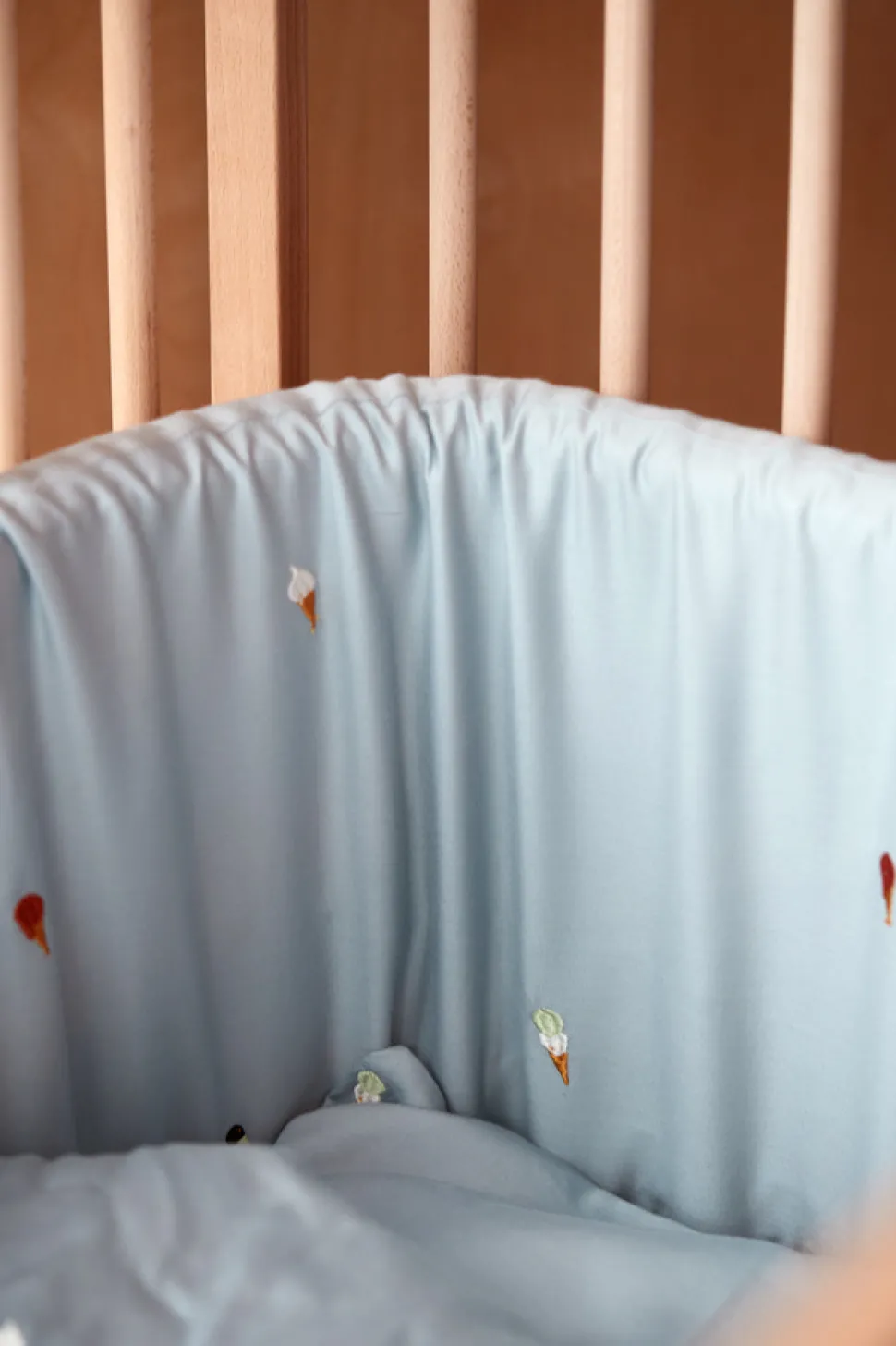 Forældre bruger meget tid på at hjælpe vores kære små med at falde i søvn, og findes der egentlig en bedre måde at slutte dagen på end at blive puttet ned i små glimt af glæde med et kys? Sengerand er designet til at skabe en hyggelig stemning i enhver krybbe og tremmeseng. Hvis din seng er mindre, skal du blot lægge sengerandens ender over hinanden. Den 4 cm tykke polyesterskumkerne hjælper sengeranden med at stå oprejst, så du ikke skal fastgøre den til sengen med f.eks. bånd. Derudover sikrer den ekstra tykke kvalitet, at din baby ikke slår hovedet ind i sengens hårde tremmer. Den integrerede lynlåsfunktion hjælper dig med at tage betrækket af, så du kan vaske det efter behov. Husk at trække betrækket i form og putte det direkte på skumkernen efter i vask. Lad betrækket tørre på sengeranden for at mindske risikoen for, at det krymper.