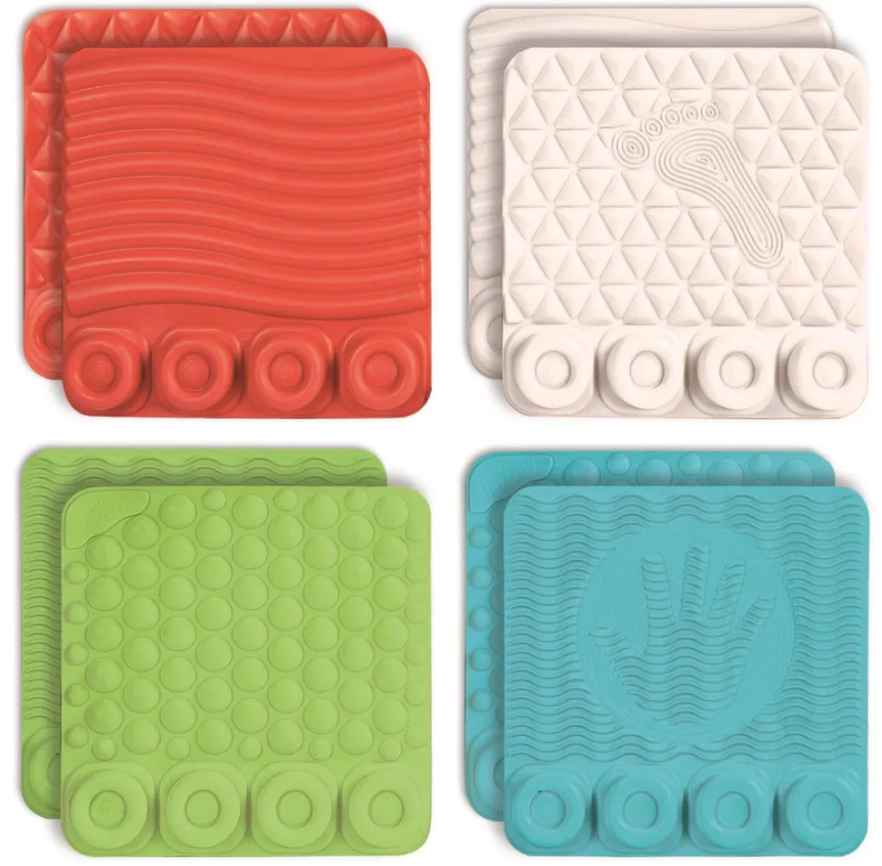 Med de 8 bløde fliser kan der skabes mange sansebaner, som kan udforskes med både hænder og fødder. Materialet i Clemmy fliser og mursten er certificeret, giftfrit, skridsikkert og vaskbart, selv i opvaskemaskinen! Dit barn får en legeoplevelse, der er sjov, udfordrende og helt sikker.