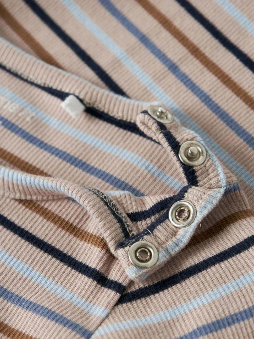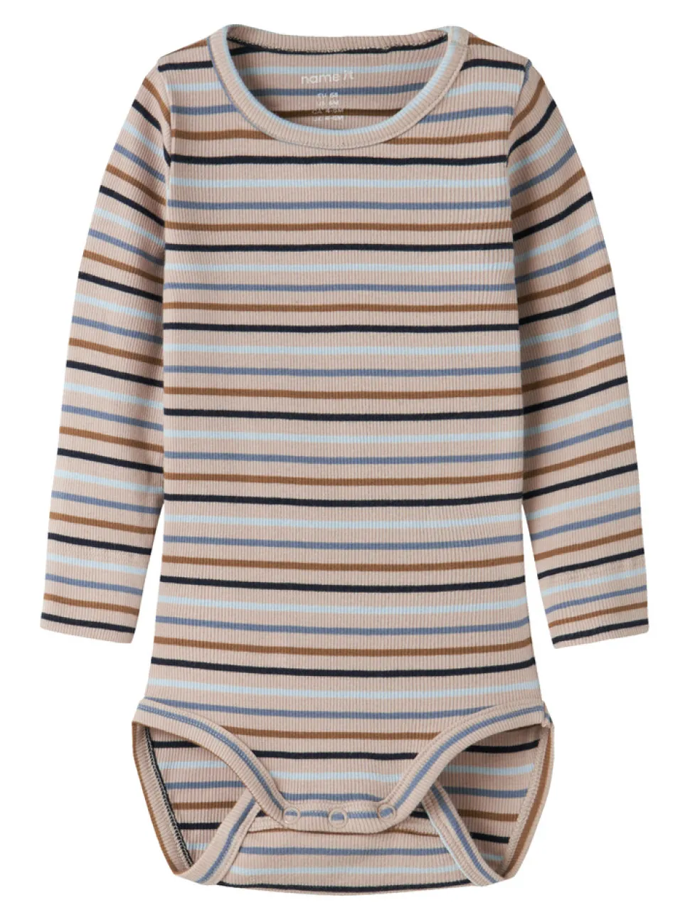 Serro Langærmet Body fra NAME IT er et skønt basisstykke til garderoben. Bodyen er fremstillet i et blødt og behageligt materiale, der føles rart mod barnets hud og giver god bevægelsesfrihed. De praktiske trykknapper ved skulderen og mellem benene gør det nemt at klæde barnet på og skifte ble, hvilket er en stor fordel i en travl hverdag. Det neutrale “Mushroom”-design passer til både piger og drenge og kan nemt kombineres med andre styles. Perfekt til både leg og afslapning, og ideel som gave til de mindste.