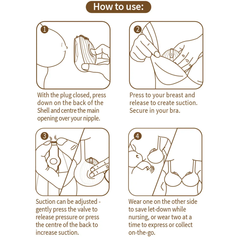 Vi introducerer dig til Shell Wearable Silicone Pump. En praktisk blanding af brystpumpe og mælkeopsamler. Denne smarte lille enhed fungerer som en bærbar brystpumpe, hvilket gør den ideel til de dage, du har brug for at pumpe, men har ting at gøre.Du skal blot trykke på bagsiden og fastgøre den til dit bryst, tage din bh på igen og komme videre med din dag! Du kan regulere sugestyrken med en hurtig justering af ventilen.På den anden side, hvis du vil bruge den til mælkeopsamling skal du fjerne vacum, så der ikke suges, sætte skallen i din bh og passivt samle det, der allerede lækker ud! Skallen ligger fladt på ryggen, når det er tid til at blive tømt, hvilket forhindrer spild af mælk, det er let at hælde, giver dig mulighed for at overføre dit dyrebare flydende guld til en flaske eller opbevaringsbeholder uden rod. Let at bruge, let at rengøre, Haakaa Shell er det perfekte valg til mødre, der har brug for både en pumpe og en opsamler.