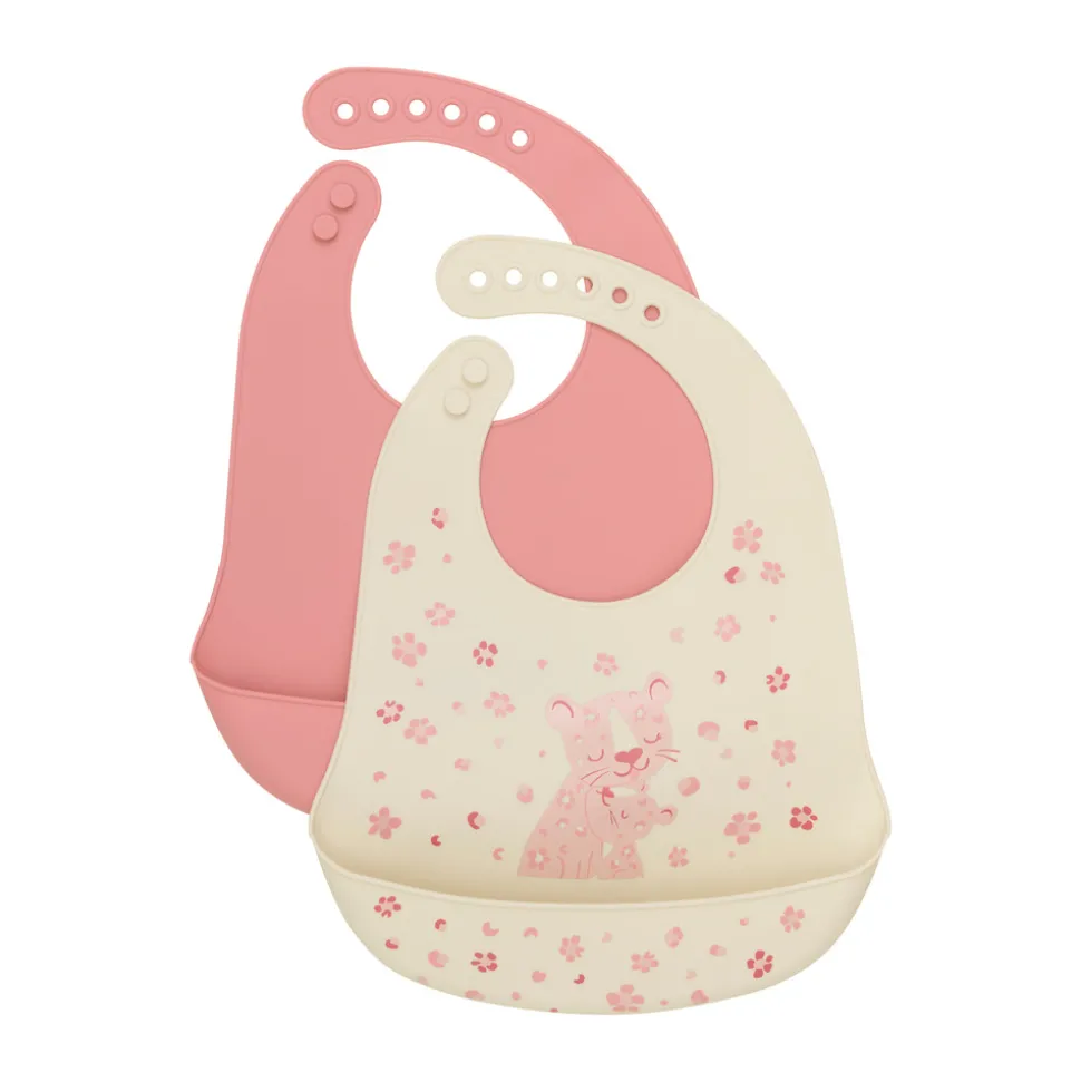 Spisesmæk i silikone. Praktisk hagesmæk der er blød og nem at bruge til baby og børn. Med praktisk opsamler der gør spisetiden nemmere.