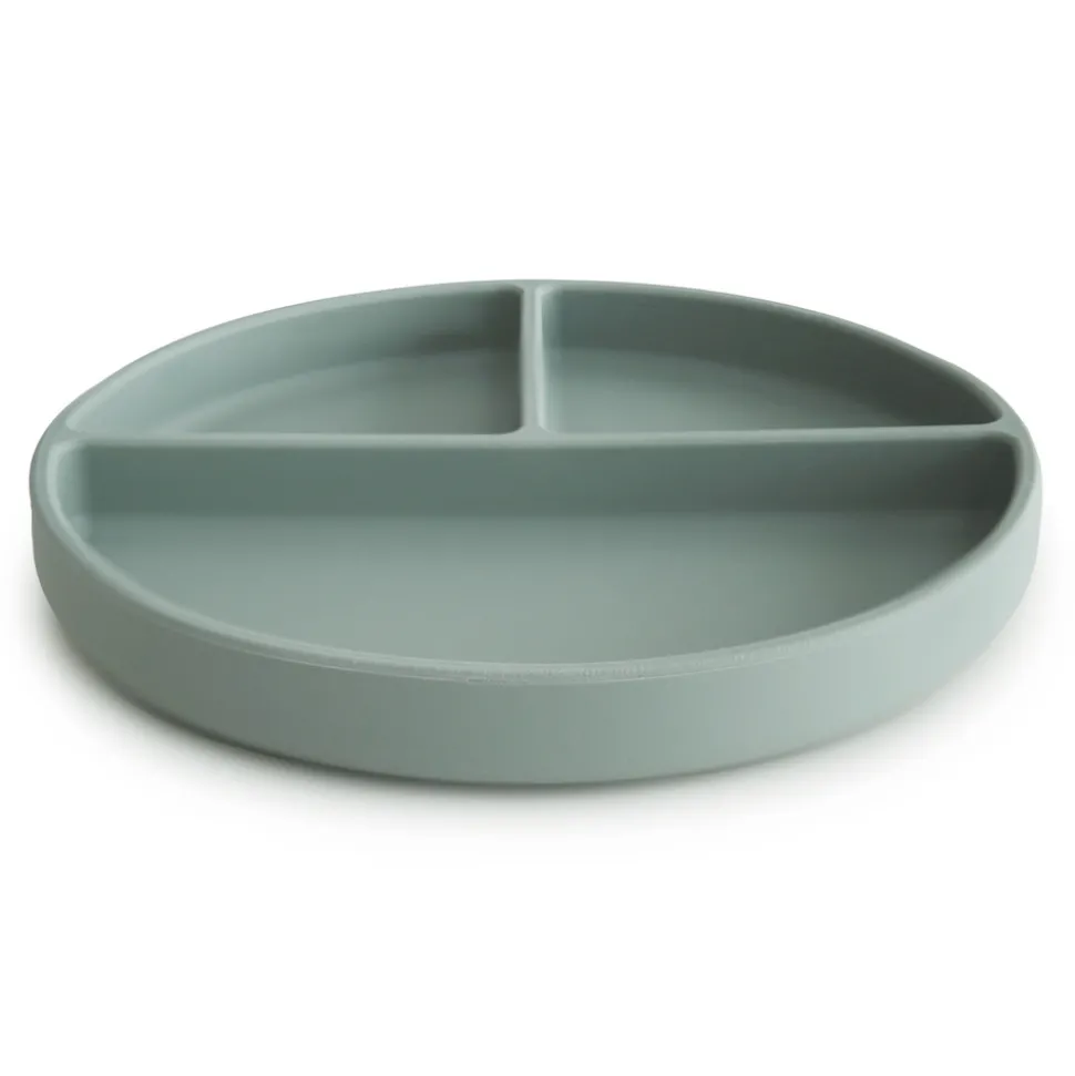 Mushie tallerken med skridsikker bund. Tallerken i silikone med sugekop i bunden, hvilket sikrer, at tallerkenen ikke rykker sig, når baby spiser sin mad. Den er opdelt i tre, så det er muligt at opdele maden. Tallerkenen har en god størrelse, og den klæber godt fast på en ren, glat og tør overflade med god friktion. Kombinér tallerkenen med Mushies andre produkter til spisetid for at skabe et fuldent og elegant sæt.