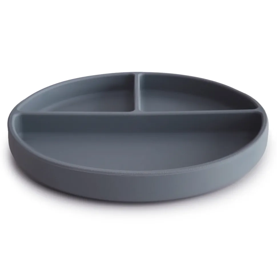 Mushie tallerken med skridsikker bund. Tallerken i silikone med sugekop i bunden, hvilket sikrer, at tallerkenen ikke rykker sig, når baby spiser sin mad. Den er opdelt i tre, så det er muligt at opdele maden. Tallerkenen har en god størrelse, og den klæber godt fast på en ren, glat og tør overflade med god friktion. Kombinér tallerkenen med Mushies andre produkter til spisetid for at skabe et fuldent og elegant sæt.