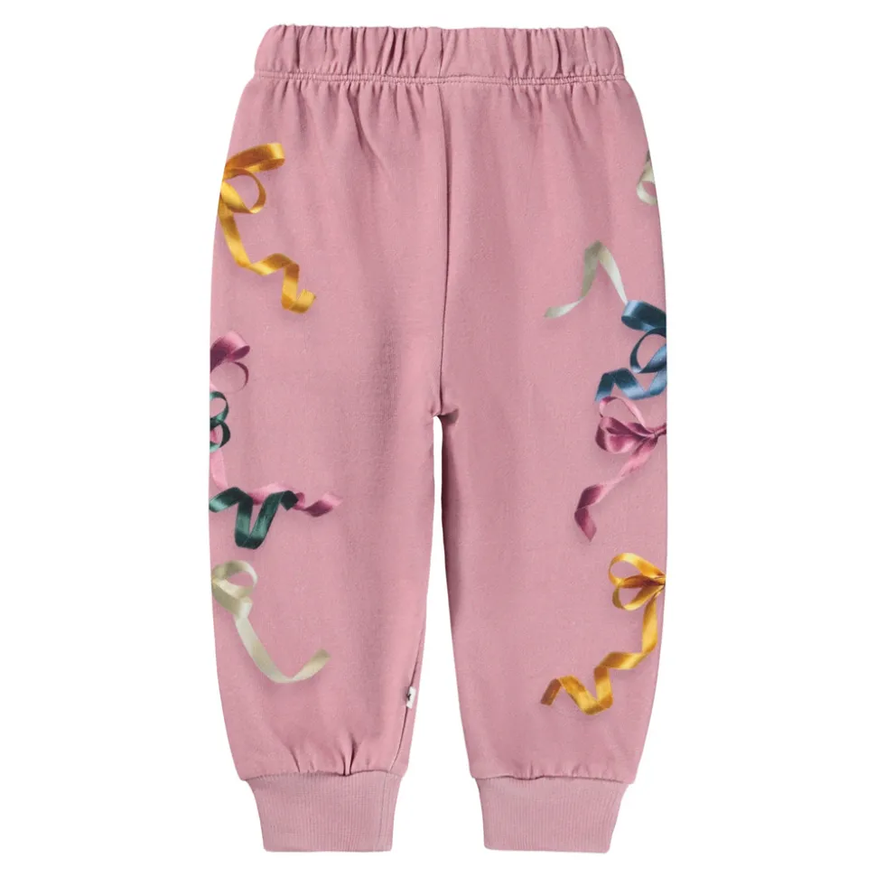 Bukser i økologisk bomuldsjersey med elastik og bindebånd i taljen, der giver en justerbar og behagelig pasform. Ribkanter ved benene og en børstet inderside gør dem ekstra bløde og varme – perfekte til kølige dage.