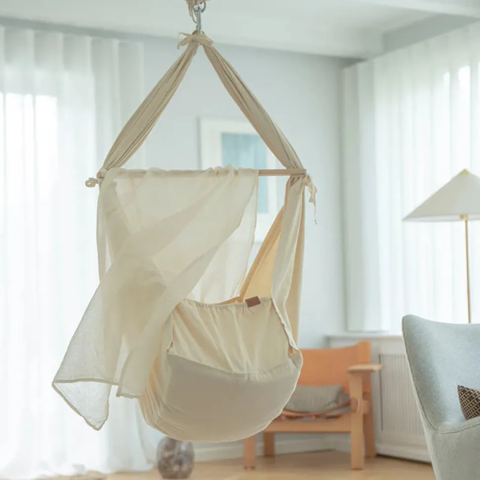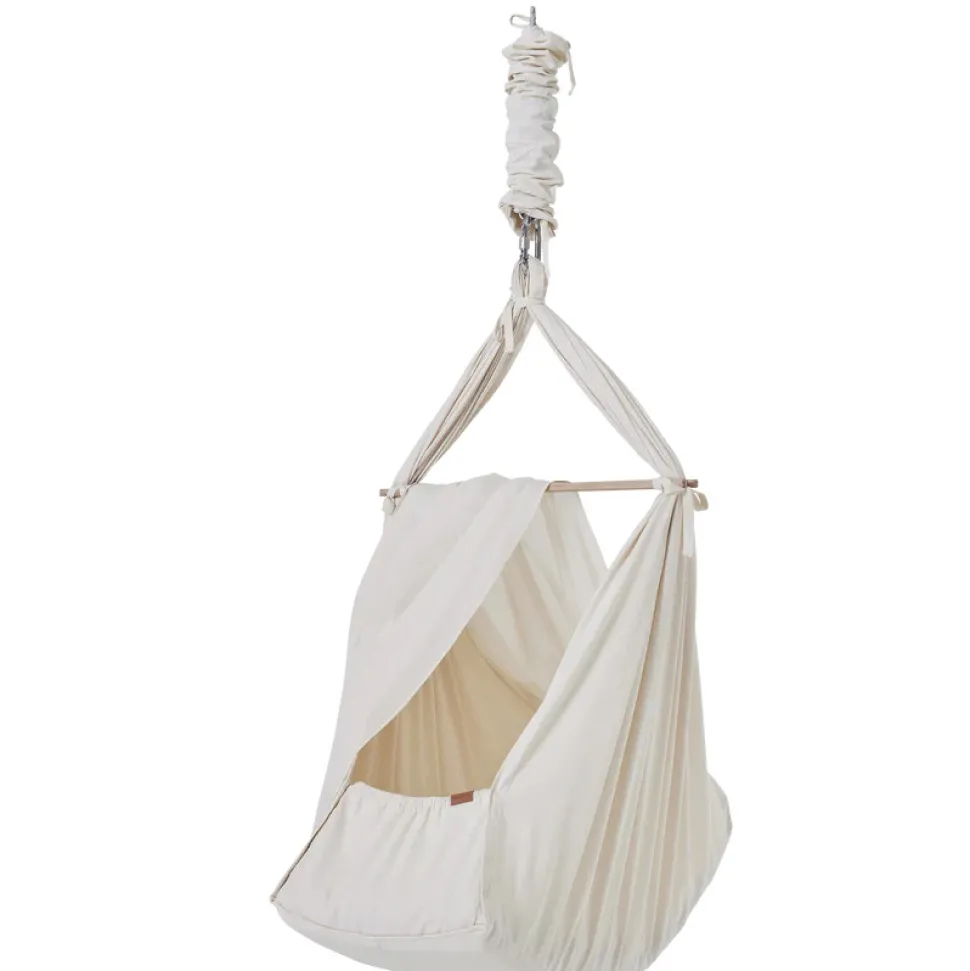 Medfølger:Slyngevugge i 100% økologisk bomuldBaldakin/myggenetTværpind i lyst egetræFjeder med sikkerhedsstrop og bomuldspose (max. 15 kg.)Bærepose i 100 % økologisk bomuldMadras med 100% ren uld og 100 % økologisk bomuldsbetrækPåmonteret lagen i 100% økologisk bomuld med fin broderingStor karabinhage med skruelås og gummiisolering