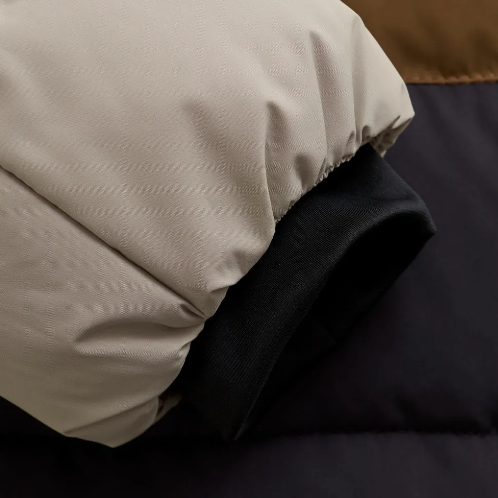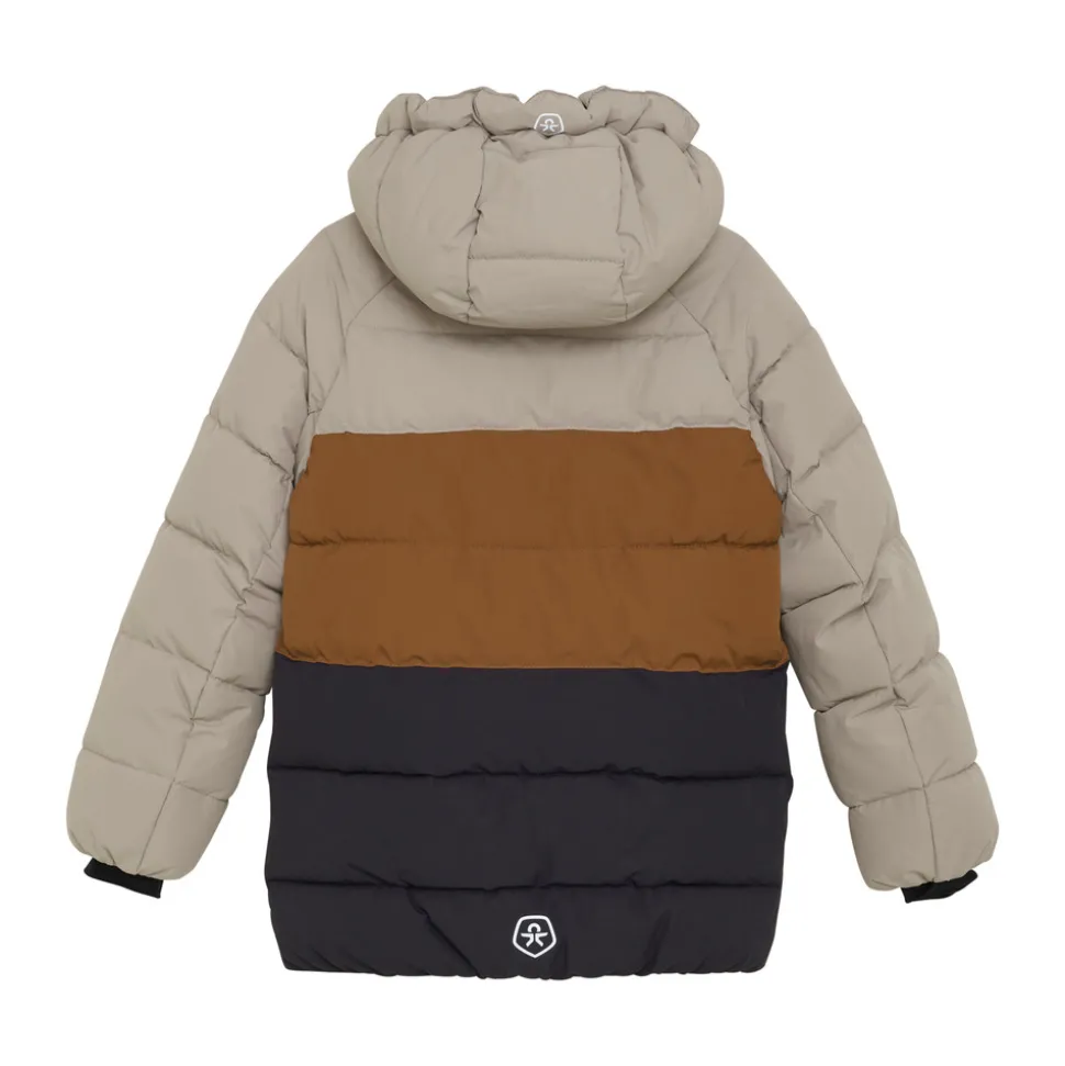 Varm puffer-vinterjakke med moderne color block-design – perfekt til kolde og våde vinterdage. Jakken er fremstillet i et slidstærkt og delvist genanvendt materiale, der er både åndbart, vind- og vandtæt. Med en testet slidstyrke på 20.000 gnidninger, et vandsøjletryk på 8.000 mm og en åndbarhed på 3.000 g/m²/24h, giver den pålidelig beskyttelse mod vinterens udfordringer.