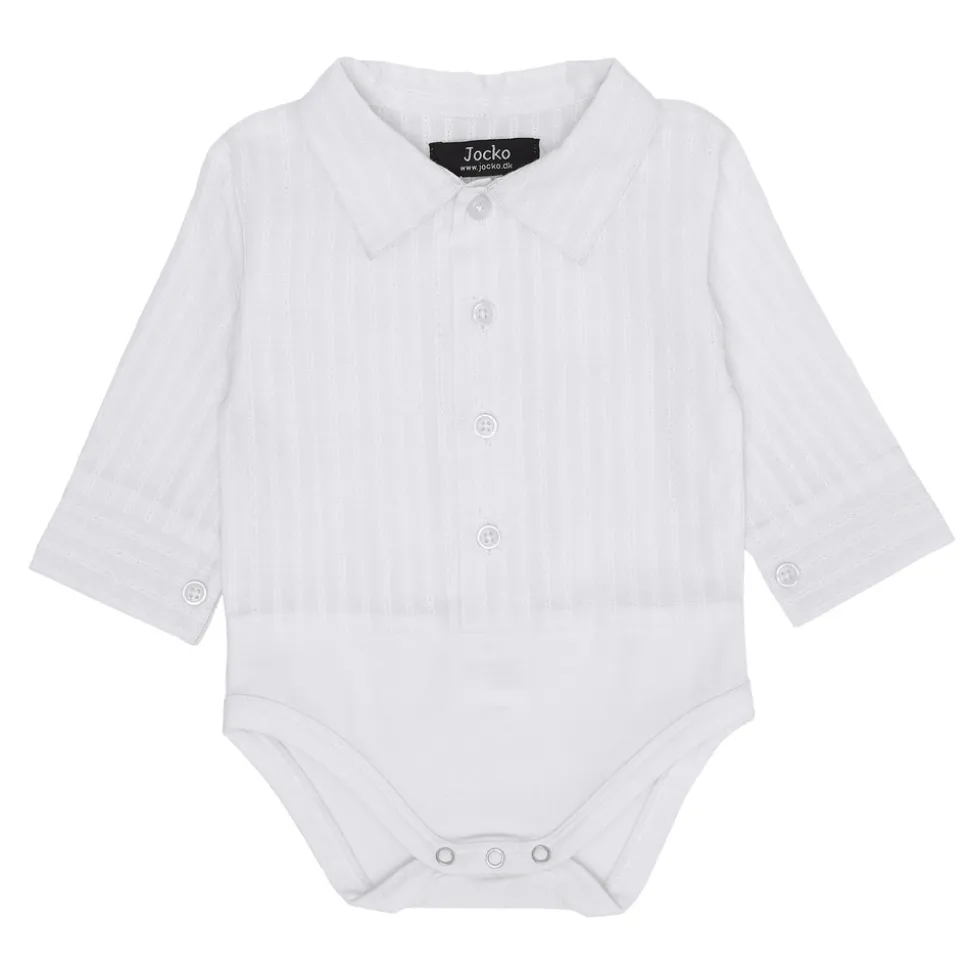 Flot bodyskjorte med krave og knapper. Knapper i bunden af skjorten gør bleskiftningen nem