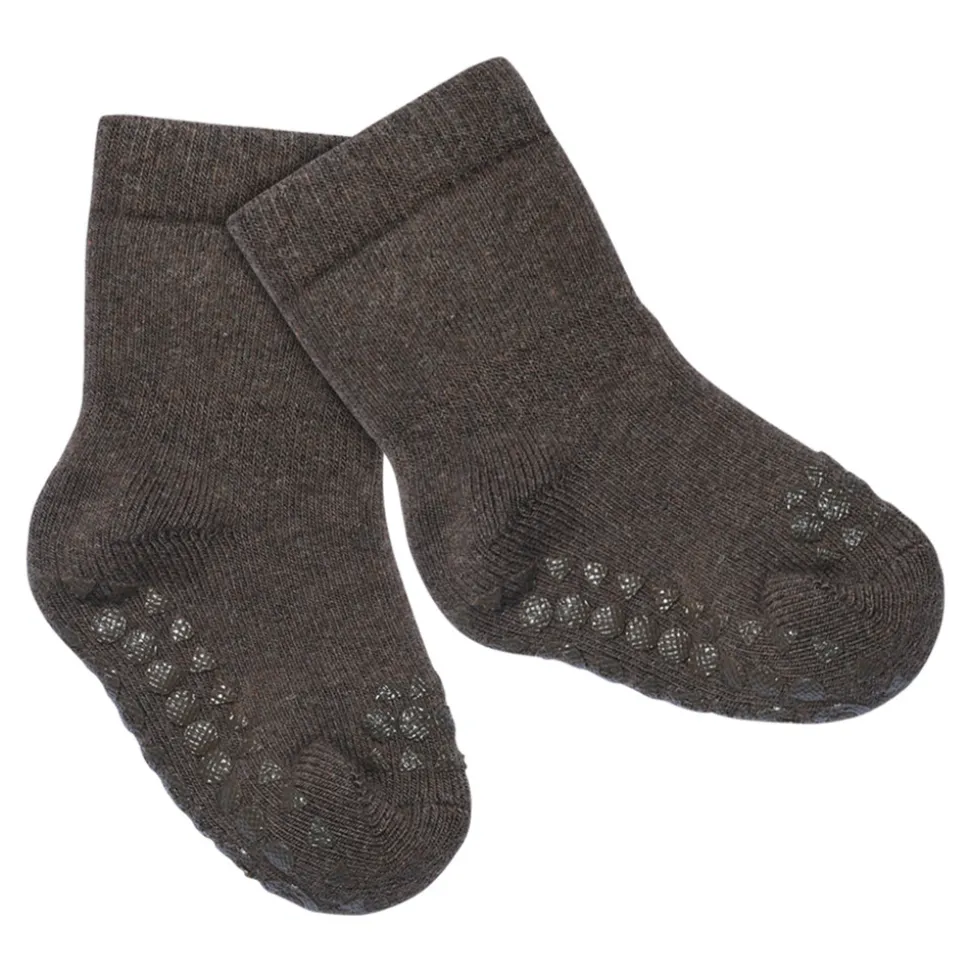 GOBABYGO Skridsikre Strømper Terry Bomuld i farven CHOCOLATE er designet til at støtte dit barns første skridt og aktive leg. De skridsikre dupper under foden og på tæerne giver ekstra stabilitet på glatte overflader, så barnet trygt kan udforske verden. Strømperne er lavet af blød og åndbar bomuld, der sikrer komfort hele dagen, mens den ekstra tykke frotté holder små fødder varme. Den stærke elastik i skaftet sikrer, at strømperne bliver siddende, uden at stramme. Perfekte til både indendørs leg og afslapning, og de er nemme at tage af og på.