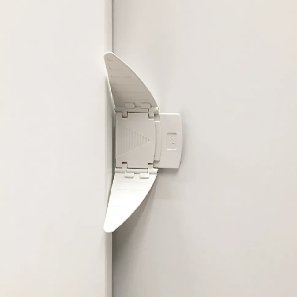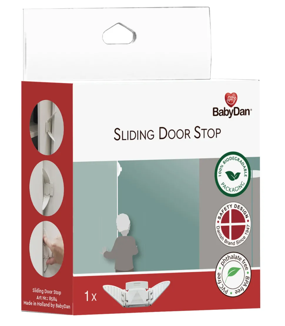 Skydedørslås. Sættes på skydedøre og forhindrer små børn adgang.