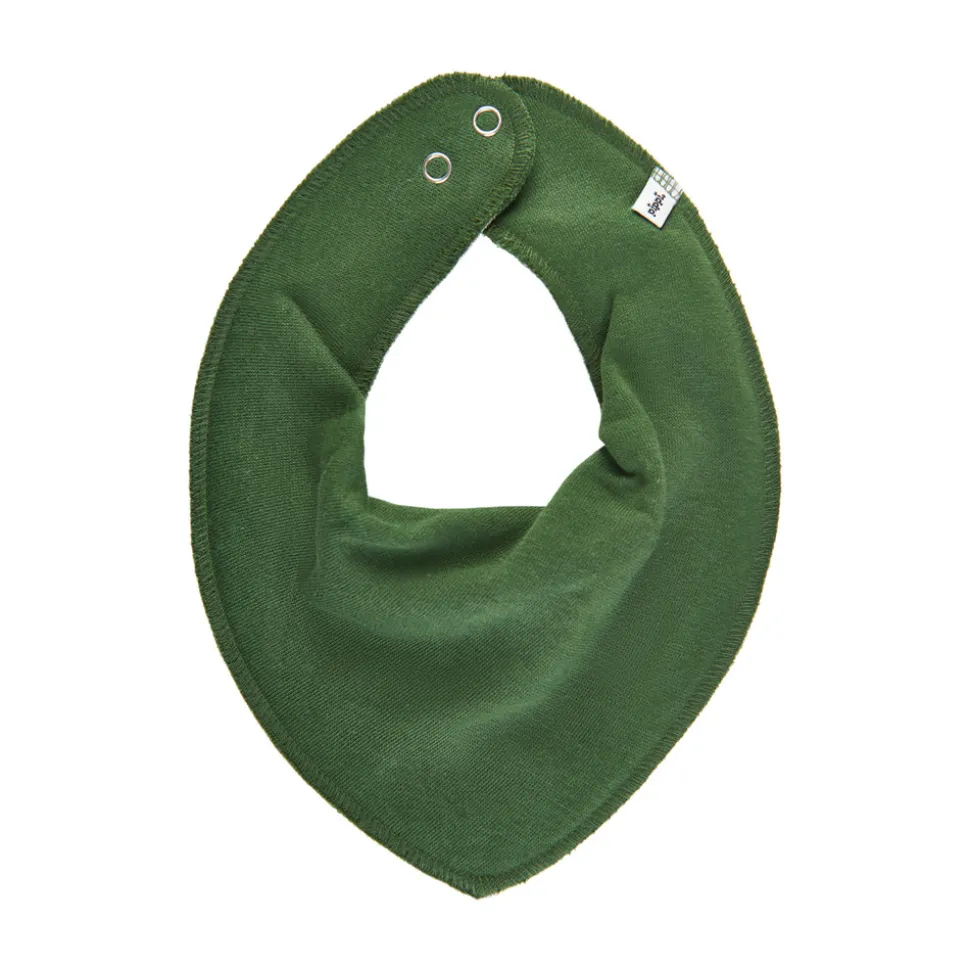 Tørklæde formet hagesmæk med trykknap i nakken.