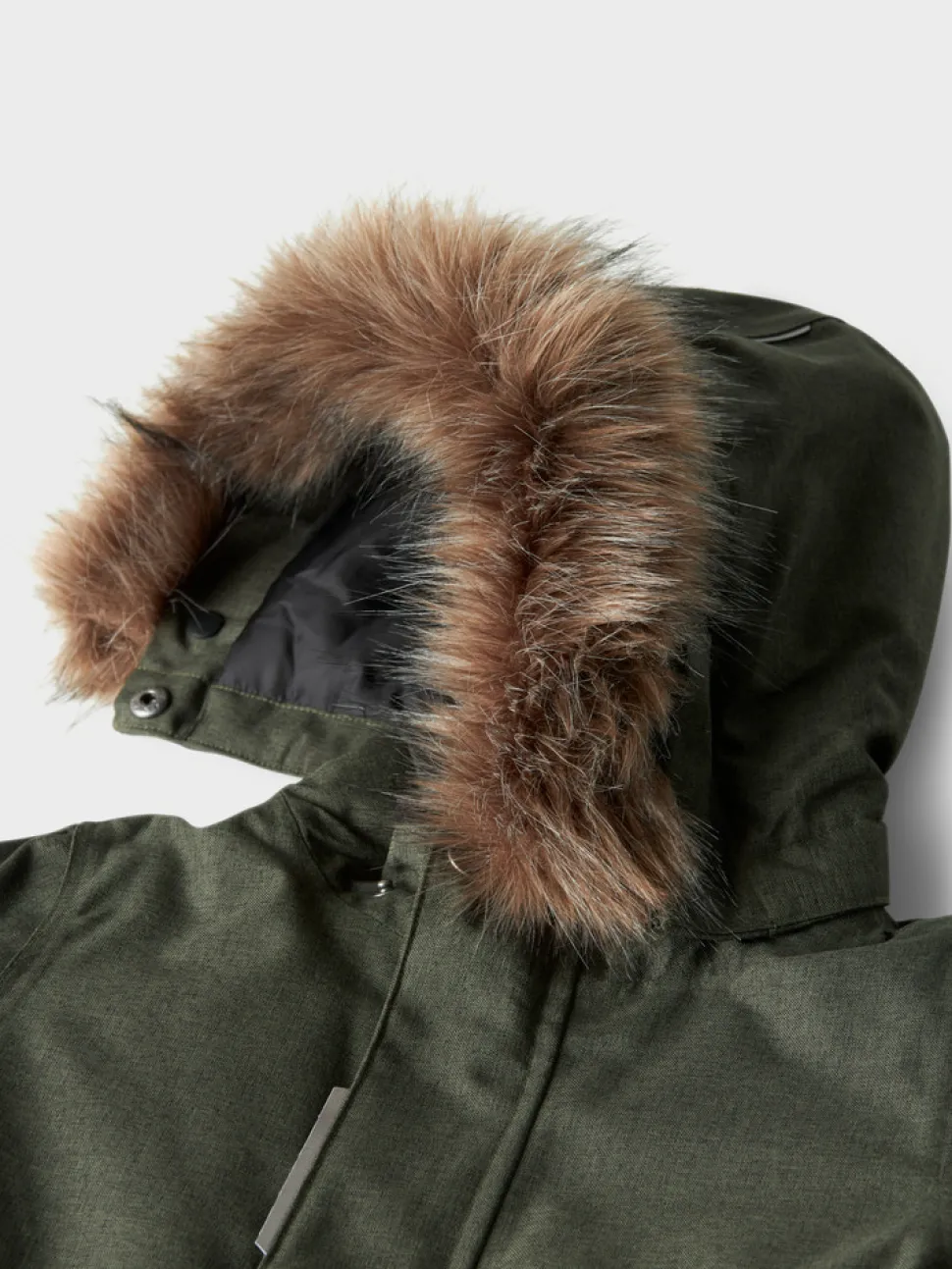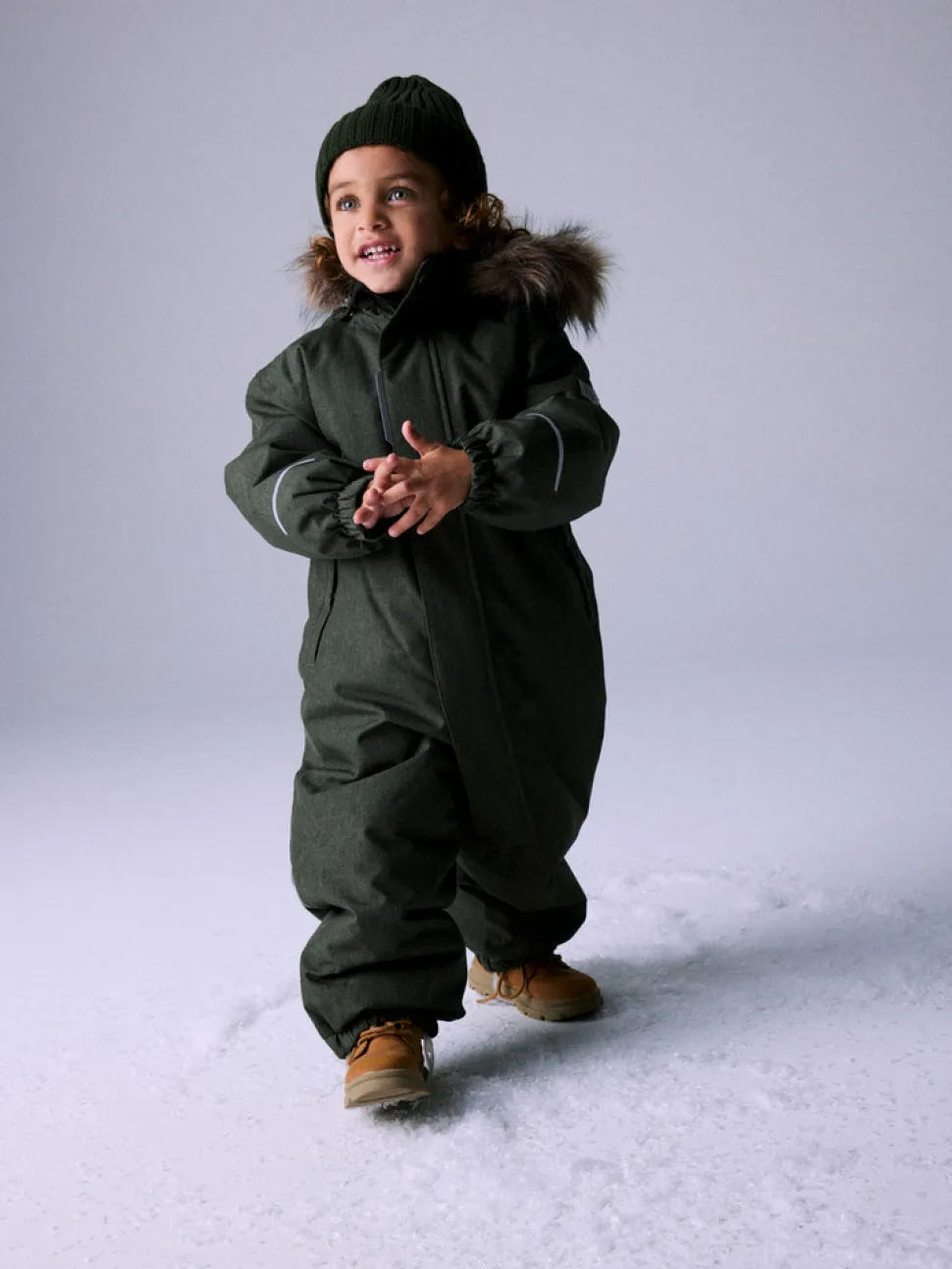 Snow10 flyverdragten fra NAME IT i farven Brownsugar er designet til at holde dit barn tørt og varmt, selv på de mest våde og kolde dage. Med et imponerende vandsøjletryk på 10.000 mm er dragten yderst vandtæt og beskytter effektivt mod regn og sne. Det slidstærke polyester sikrer lang holdbarhed, mens den åndbare kvalitet giver god komfort under leg og bevægelse. Praktiske detaljer som elastik ved håndled og ankler, aftagelig hætte og lynlås med beskyttelsesflap gør dragten nem at tage af og på, og sikrer samtidig, at kulde og fugt holdes ude. Perfekt til aktive børn, der elsker at være ude i al slags vejr.