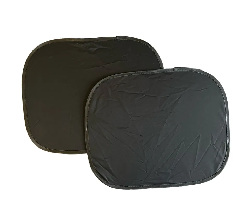 2 stk. solskærme i sort, der kan sættes på bilens ruder med sugekopper. Skærmer for solen og skaber et bedre indeklima i bilen.