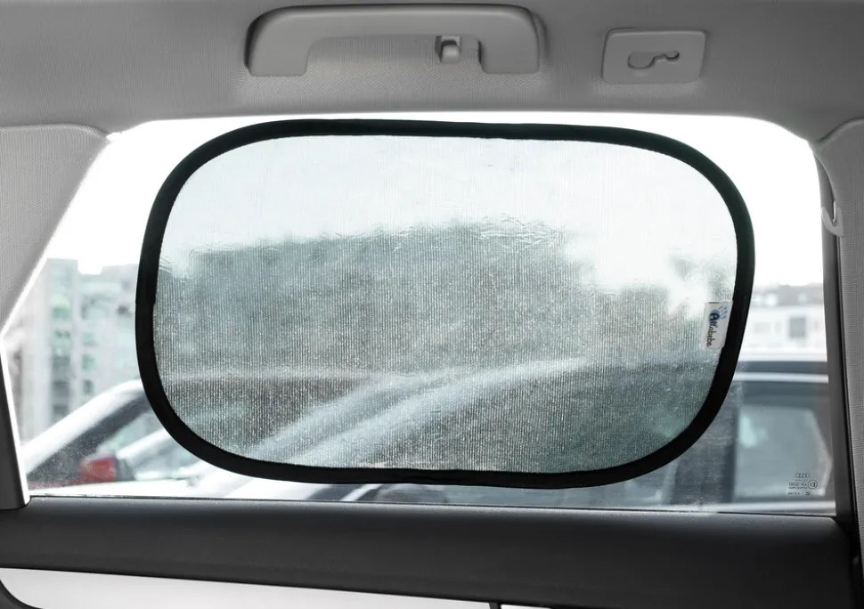 Solskærm til bilruden, som nemt klæber på ruden og skærmer mod den skarpe sol.