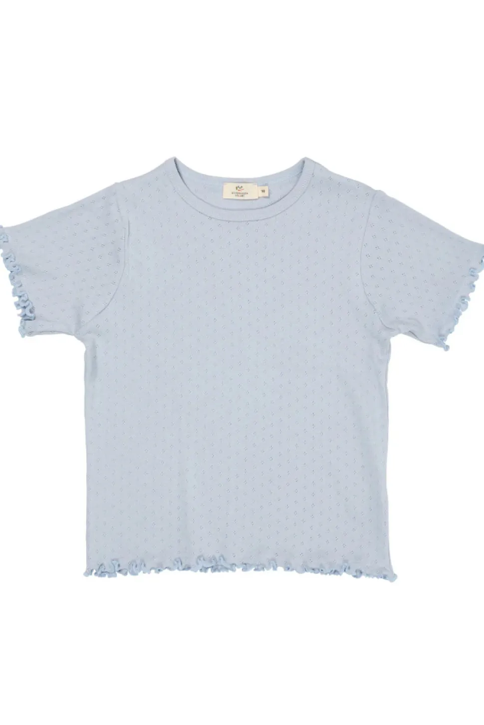 Sommer pointelle t-Shirt – Let og Lækker sommerkomfort. Denne t-shirt er lavet af et let og åndbart materiale, ideel til varme sommerdage. 100% økologisk bomuld.