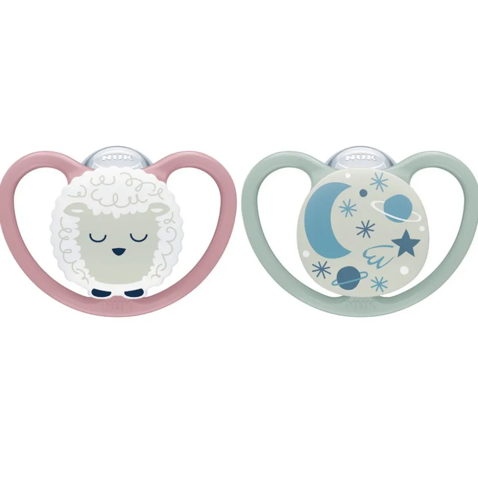 NUK Pacifier Space Night Silicon sut lyser i mørket og hjælper dig at finde den om natten.