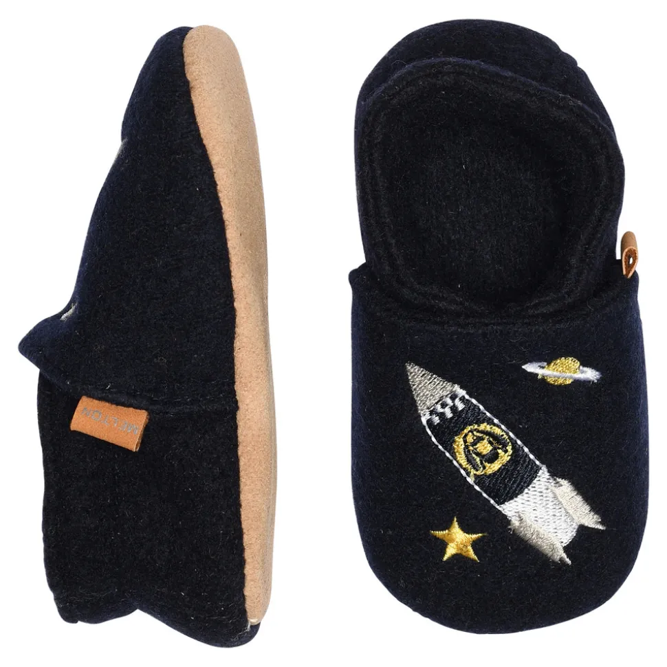 Disse lækre hjemmefutter i uld, er en favorit fra MELTON. Dekoreret med rumraketter, planeter og stjerner.