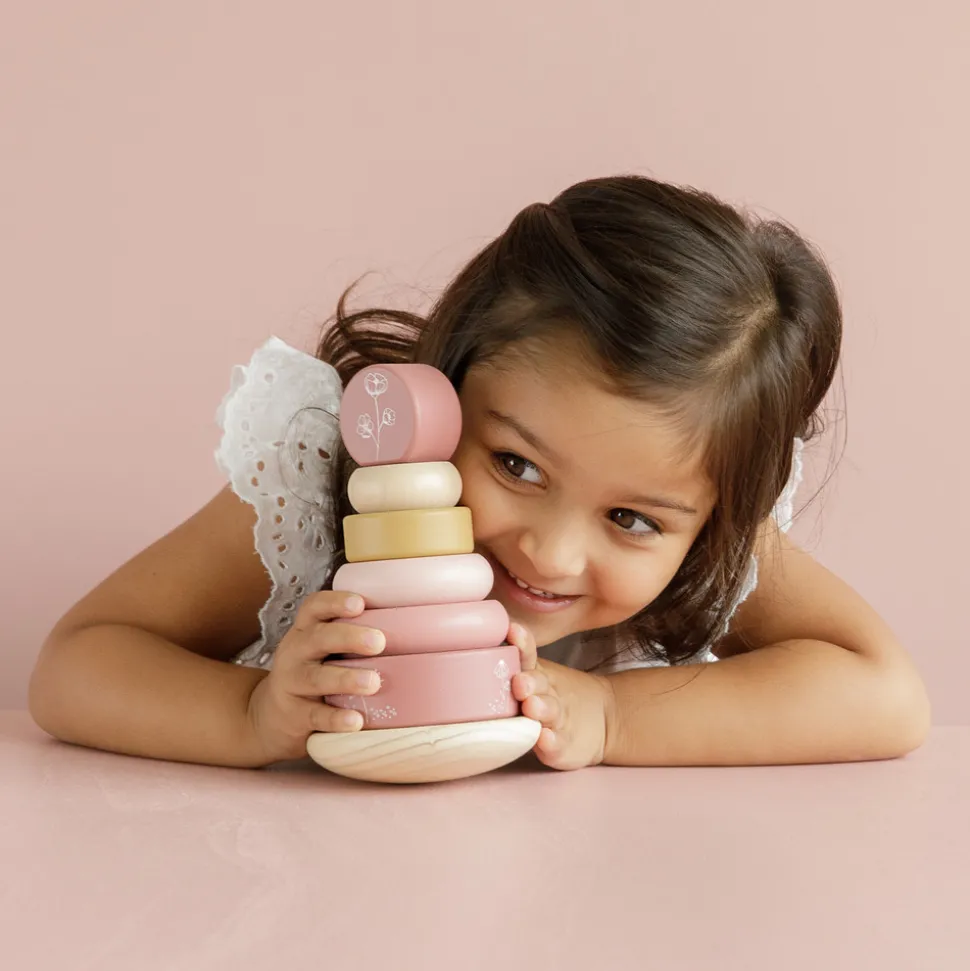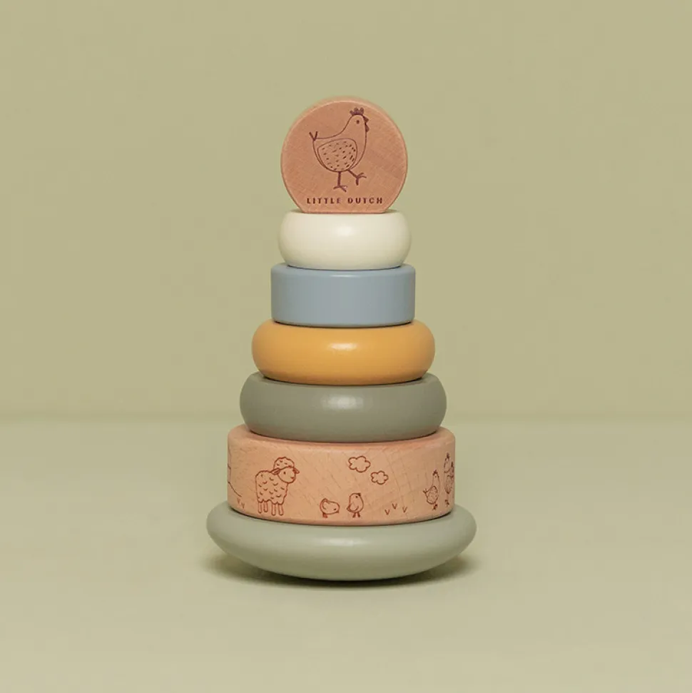 Stabelringene fra Little Dutch i træ er designet til at udvikle børnenes hånd-øje-koordination gennem sjov og praktisk leg. Børnene animeres til at placere træringene i den rigtige rækkefølge og stable dem på tårnet. Det er ganske udfordrende fordi tårnet bliver ved med at vugge frem og tilbage. Bare klø på, du kan godt