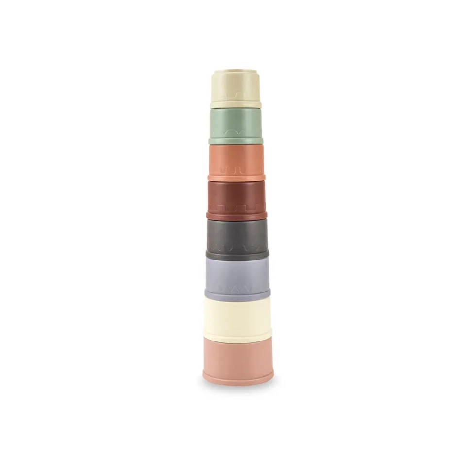 Sjove stablespande fra Scandinavian Baby Products. Sættet består af 4 “kopper” i flotte farver. I bunden er der udstanset huller, der gør spandene ideele til vandleg.