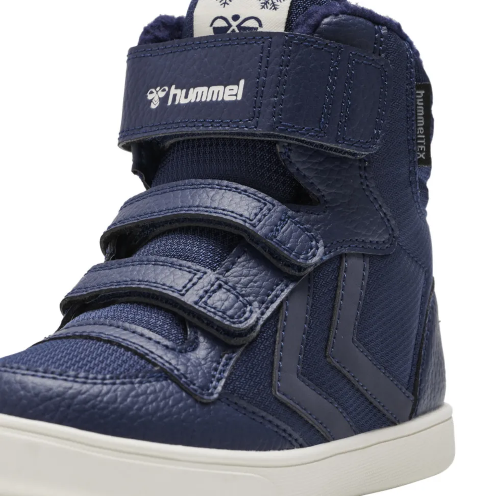 Stadil super poly tex støvle jr leverer på både komfort og funktionalitet. Den er vandtæt og åndbar takket være hummelTEX membranen, mens varmt for og en gummiydersål giver suveræn komfort. Klipbare velcrolukninger betyder, at den kan justeres efter behov, så familiens mindste kan opnå deres bedste pasform. Overdelen i mesh og kunstlæder har også ikoniske hummel® vinkler. Denne støvle er fremstillet af genanvendte materialer, så du kan være sikker på, at den ikke kun fremstår flot, men også er skånsom mod miljøet.