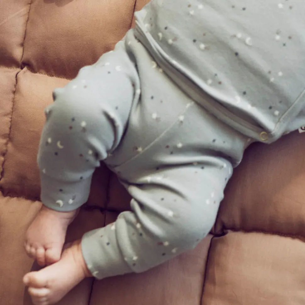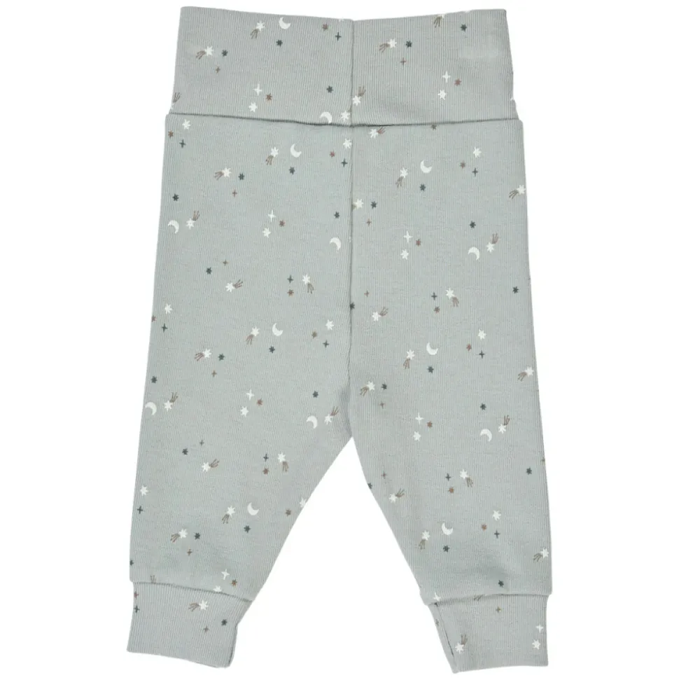 Dejlig bløde bukser i rib til de mindste. Smukt gennemgående print af stjerner. Bukserne har en bred og elastisk kant foroven som kan foldes efter behov og stil.