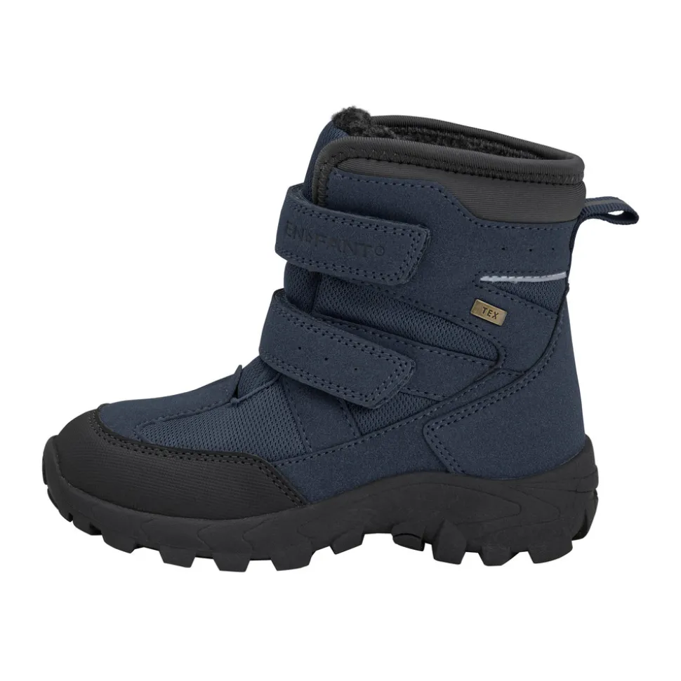 Vinterstøvler med varme og funktion fra EN FANT. Disse vinterstøvler fra EN FANT er designet til kolde og våde dage. De er foret med blødt teddyfor, som giver ekstra varme og komfort. Støvlerne er udstyret med en TEX-membran – en vandtæt, men åndbar barriere mellem ydermaterialet og foret. Det betyder, at vand holdes ude, mens varme og fugt kan slippe ud, så barnets fødder forbliver tørre og behagelige.