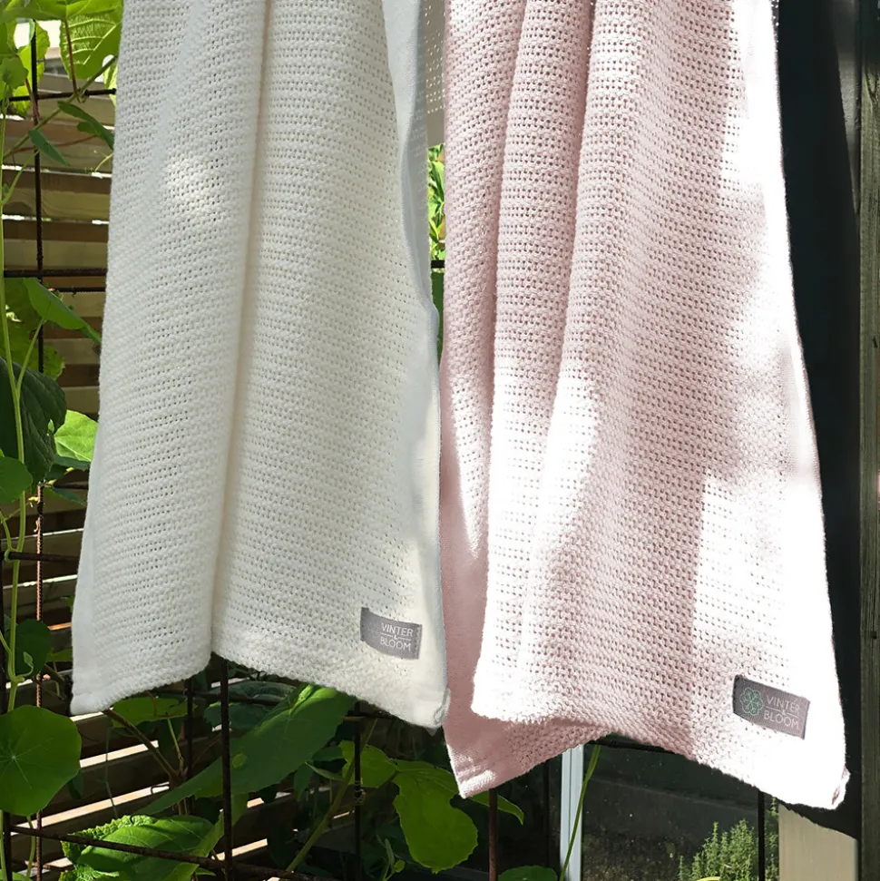 Det blødeste strik tæppe kommer fra Vinter & Bloom. Strik Mesh Blanket i GOTS-certificeret økologisk ring-spundet bomuld er et vidunderligt tæppe til babyens seng. Et striktæppe i sengen giver dit barn lige den rette mængde varme. Det specielle netmønster hjælper med at give både isolering og åndbarhed og bliver ikke for varmt. Net-tæppet er også velegnet til brug i barnevognen, så du nemt kan justere temperaturen. Ved at vælge GOTS-certificeret økologisk bomuld beskytter du miljøet og tager også socialt ansvar for menneskerne i produktionskæden.