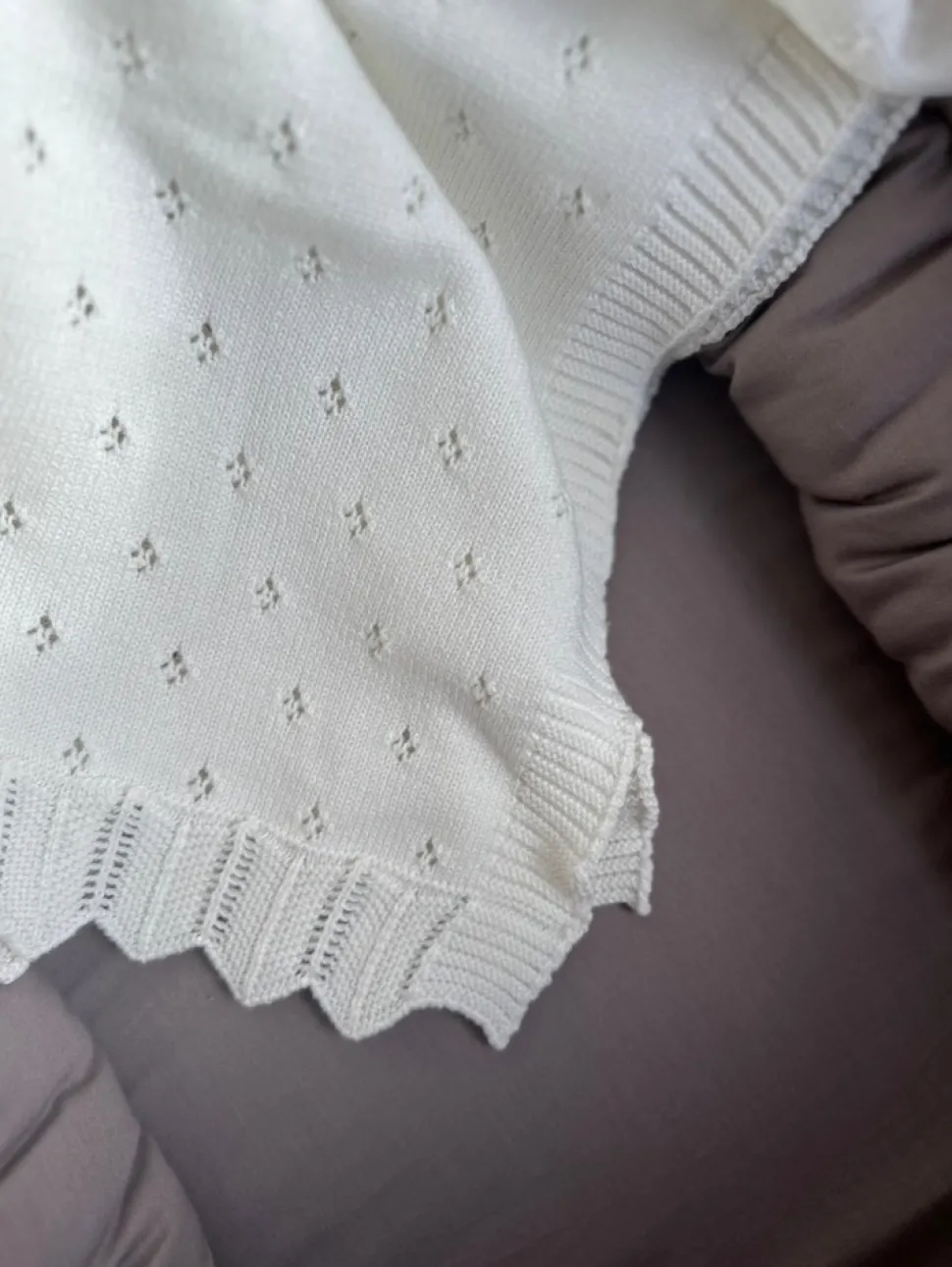 Stiktæppet fra Vanilla Copenhagen er strikket i det fineste økologiske bomuld.
