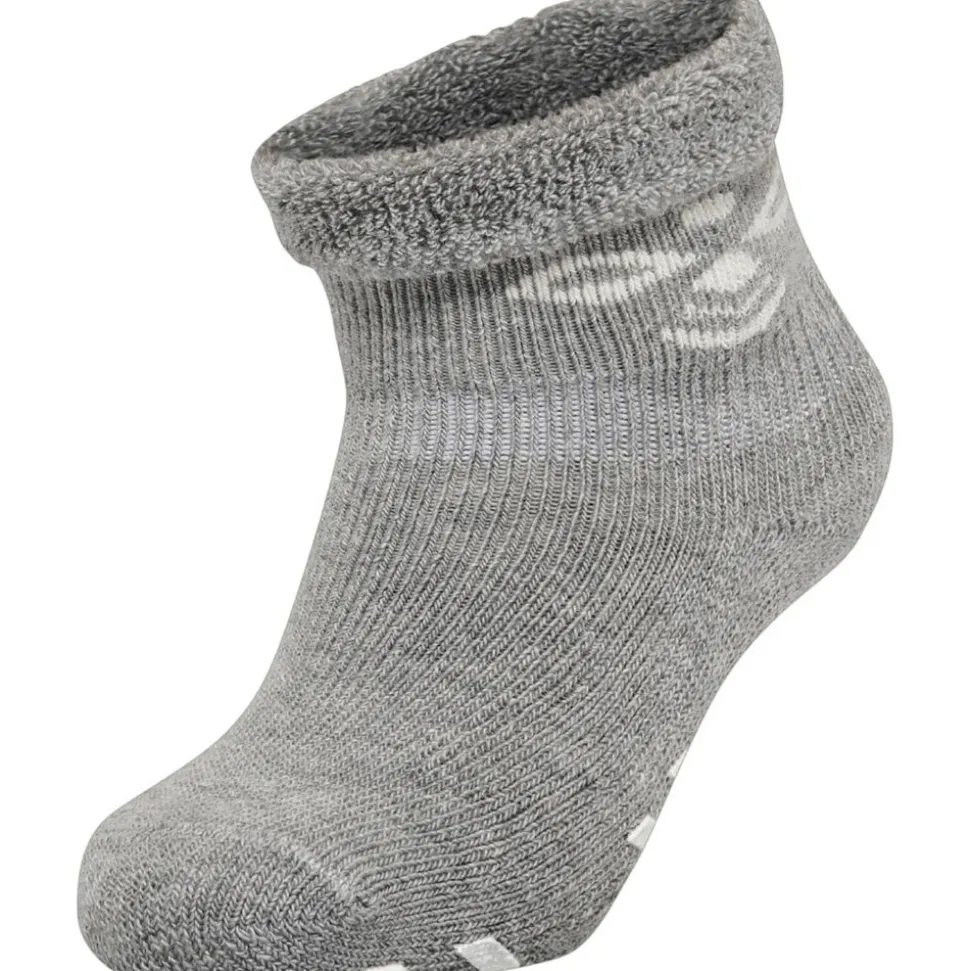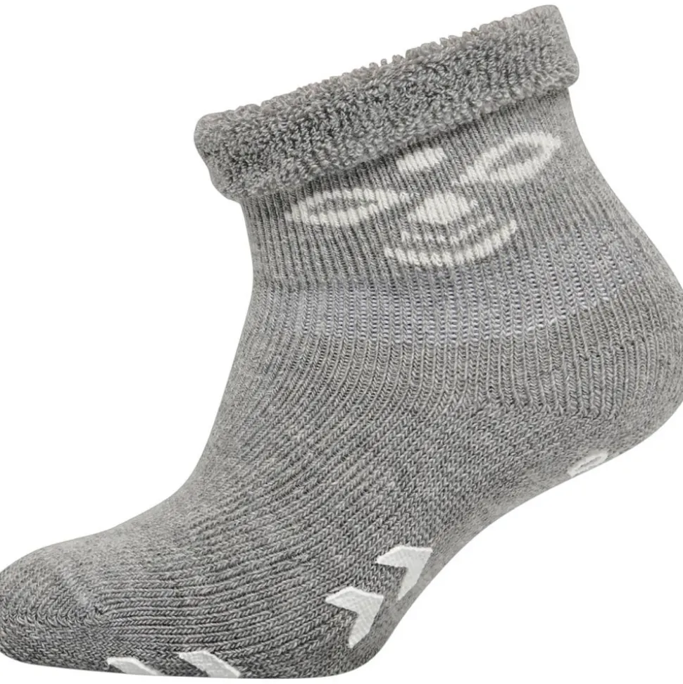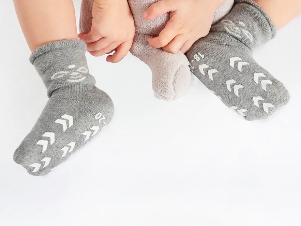 Disse strømper bliver på! Med Snubbie er det slut med, at strømperne glider af, for disse hummel® strømper sidder tæt og godt omkring den lille fod. Som en ekstra detalje er strømperne ultra varme og bløde, og de har skridsikre gummidutter i det velkendte hummel® print, som giver baby fast grund under fødderne.