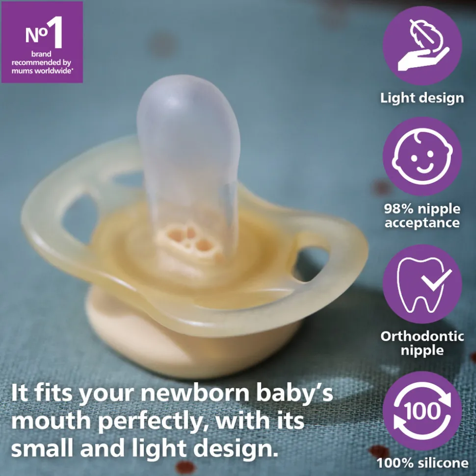 *Forbrugertesten 2016-2017 i USA viser, at 98% af børn i gennemsnit accepterer Philips Avent sutter med en glat tekstur, der bruges i Ultra Air og Ultra Soft sutterne.