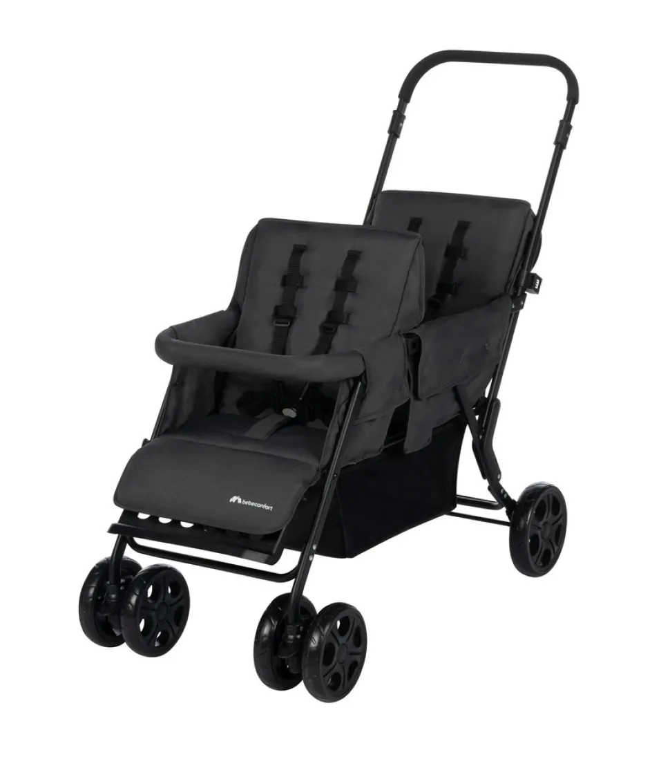 • Robust og komfortabel kørselBebeconfort er den ideelle tvillinge- eller søskendevogn til forældre, der ønsker både komfort og fleksibilitet på farten. Vognen har to rummelige sæder, hvor hvert barn kan sidde behageligt side om side. De justerbare ryglæn og fodstøtter gør det nemt at tilpasse vognen til børnenes behov, uanset om de vil sidde op eller tage en lur. De store kalecher beskytter effektivt mod sol og vind, og den robuste konstruktion sikrer en stabil og behagelig kørsel. Teamy er let at folde sammen og transportere, hvilket gør den perfekt til både byliv og udflugter. En praktisk og stilfuld løsning til aktive familier.