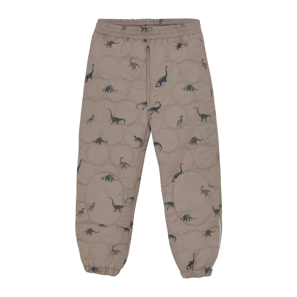 Dette termosæt består af en termojakke og matchende termobukser i samme farve og med et cool dinosaurmotiv, der gør det sjovt at klæde sig på. Jakken har refleksdetaljer bagpå, som øger synligheden i mørke og gråvejr.