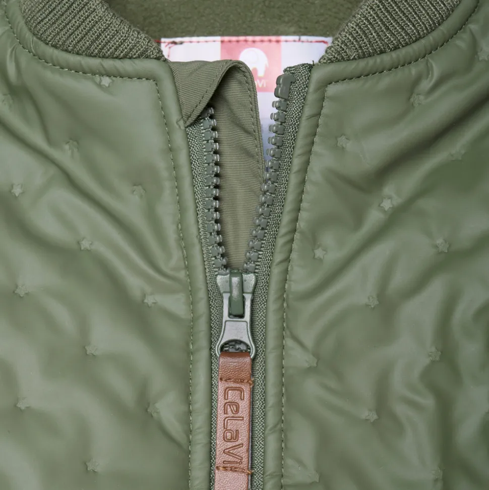 Termotøj med PU-belægning, som gør termotøjet vandtæt. Derudover er sættet foret indvendigt. Ekstra forstærket på knæ og bagpå på bukserne. Bukserne har desuden elastik i talje og ved ankler. Jakken har ribkant ved hals og håndled samt lynlåslukning. CeLaVi-logo foran.