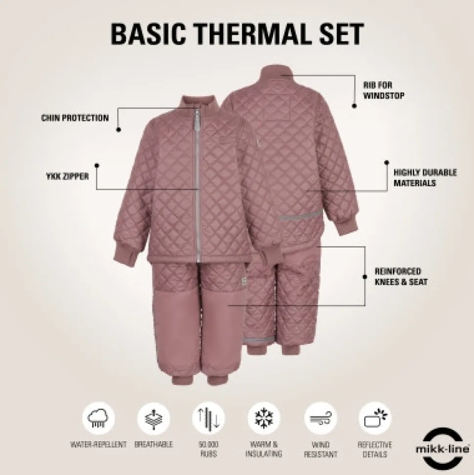 Lækkert og blødt termosæt fra mikk-line – det perfekte valg for aktive børn. Termosættet er vandafvisende og har både reflekslogo og refleksbånd, der sørger for, at dit barn kan ses i mørke. Forstærkninger på knæ og bag gør bukserne ekstra slidstærke.