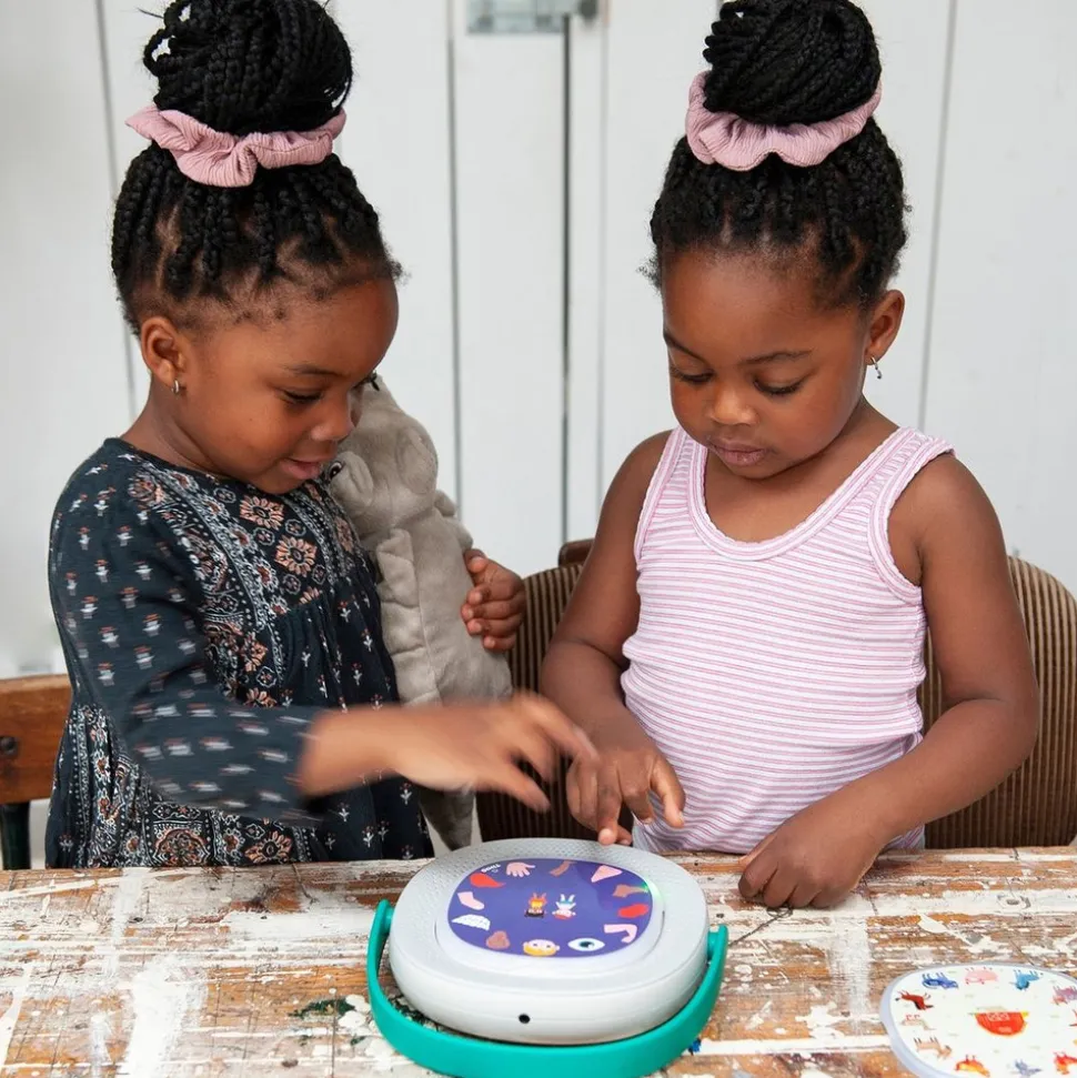 TIMIO, det interaktive lydlæringslegetøj, hjælper børn med at udvide deres viden og ordforråd fra 2-6 år. Lær alfabetet, tal, farver, dyr og objekter, lyt til historier, musik og børnesange. Alt sammen på 8 sprog!