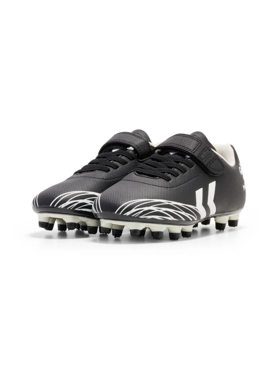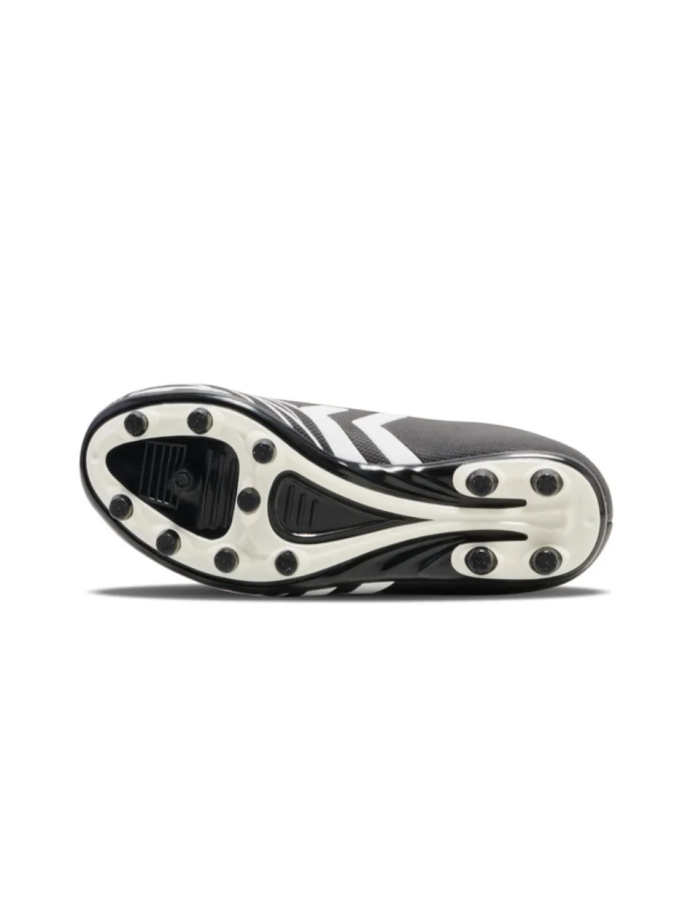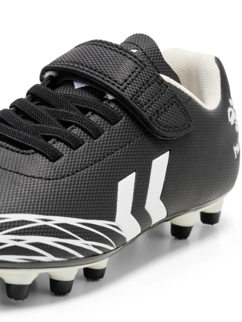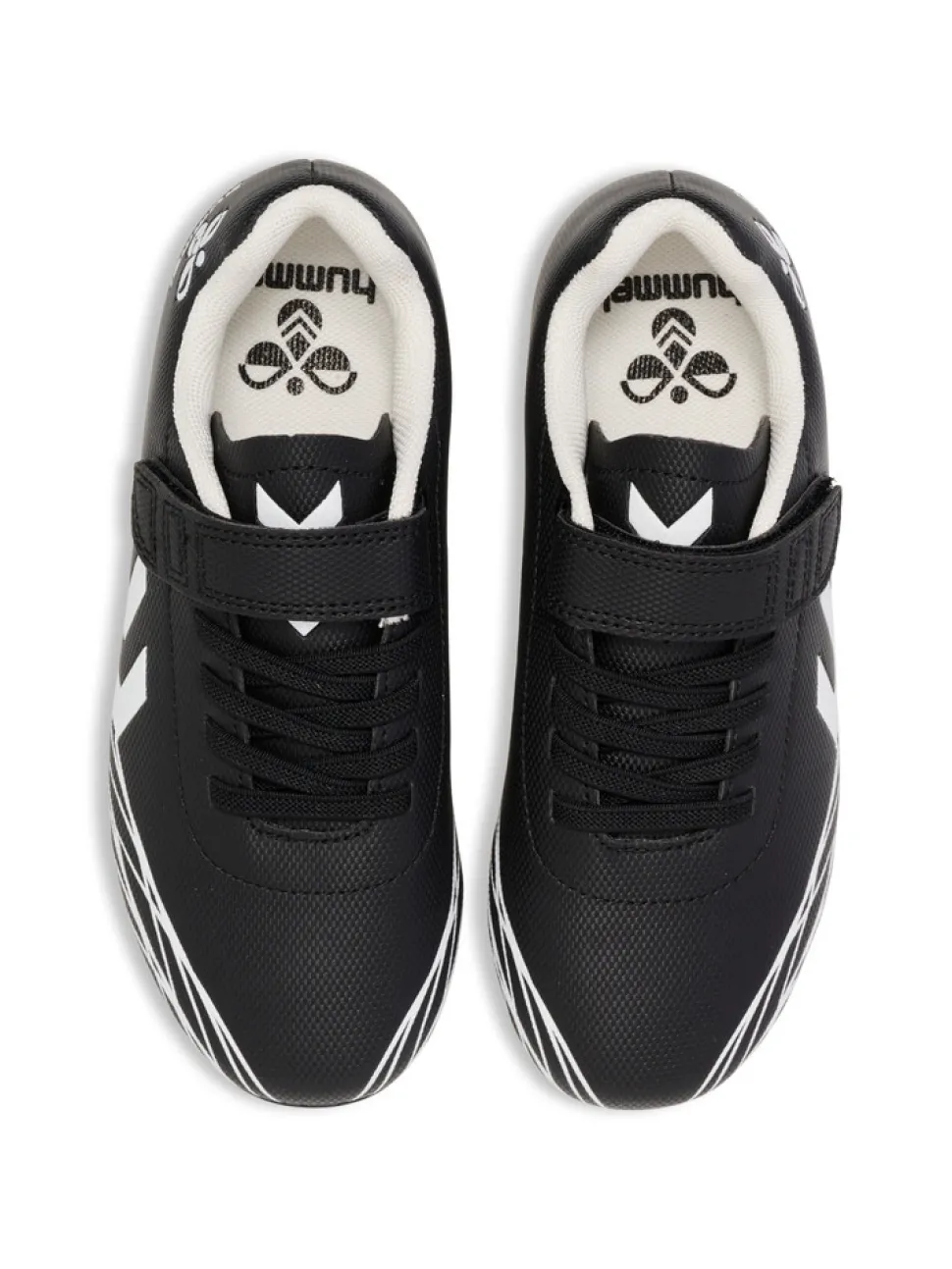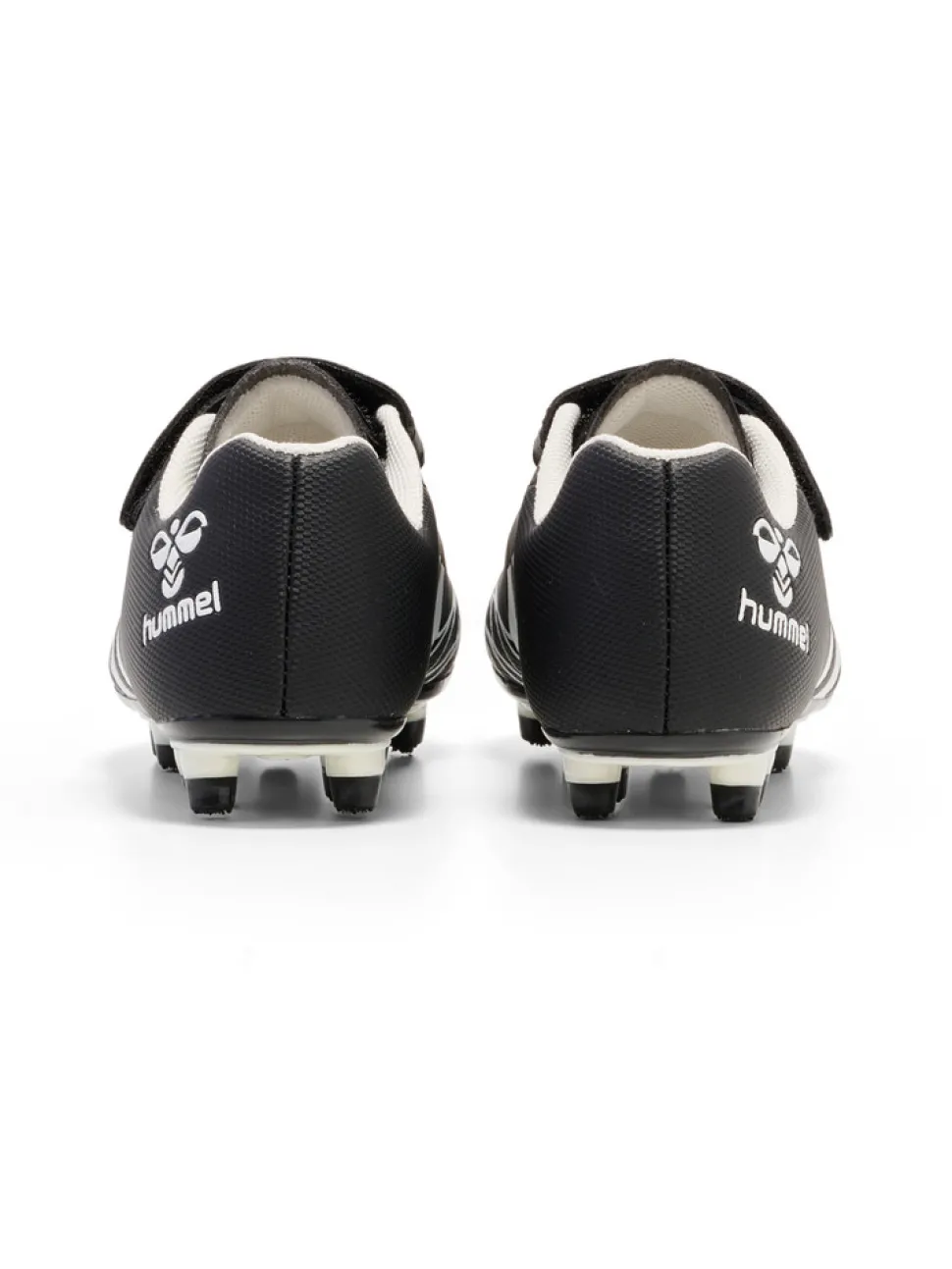 Fodboldstøvler til fast underlag. Blød kunstlæderoverdel med elastiksnørebånd og velcrolukning, blødt for i mesh og udstanset indersok. Prægninger og print på overdelen. Inspireret af hummels stolte tradition med fodboldstøvler.