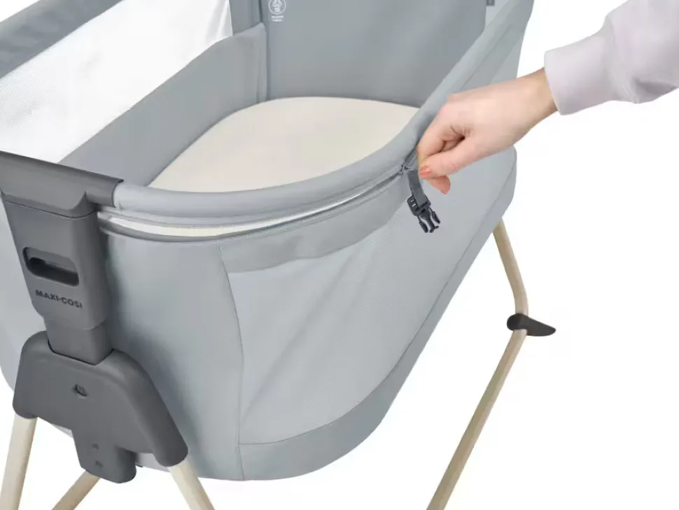 Når du deler dit værelse med din nyfødte, vil du have en kompakt co-sleeper, der er designet til at maksimere pladsen. Den lette Tori co-sleeper er enkel og stilfuld og er en del af Maxi-Cosis nye Compact-serie. Bare fordi Tori er en kompakt co-sleeper, betyder det ikke, at den tilbyder mindre komfort – faktisk har den en ekstra komfortabel madras, som er blød og støttende for din lille. Tori er lavet af bløde 100 % genbrugsstoffer og har et allround åndbart mesh-stof for at forbedre luftventilationen, så din baby altid er behagelig. Tori co-sleeper har fem forskellige højdemuligheder at vælge imellem. Du kan fastgøre Tori til din seng og lyne den ene side ned for nem adgang hele natten, for at sikre din komfort såvel som babys. Dens kompakte fold og praktiske rejsetaske sikrer, at den er nem at tage med, selv når du rejser væk hjemmefra. Med aftagelige og maskinvaskbare stoffer er den også super nem at holde ren. Pladsbesparende og stilfuld, Tori co-sleeper er alt, hvad du og baby har brug for, uden at optage for meget plads! Tori co-sleeper er en multifunktionel essentiel for forældre med en nyfødt, da det er en stilfuld 2-i-1 ved siden af co-sleeper og krybbe.