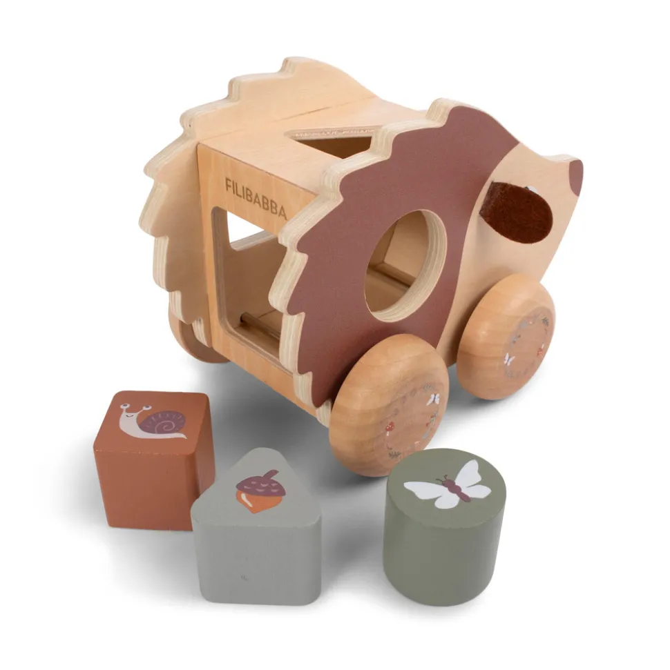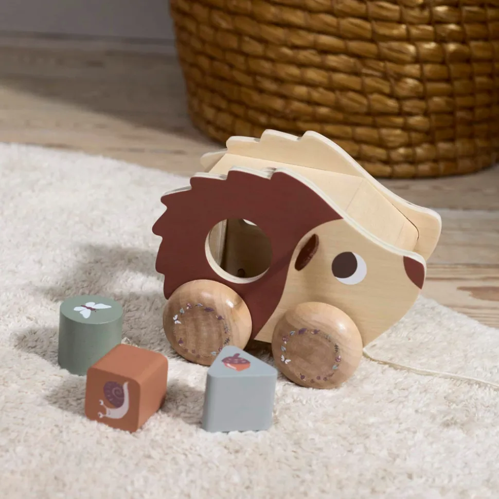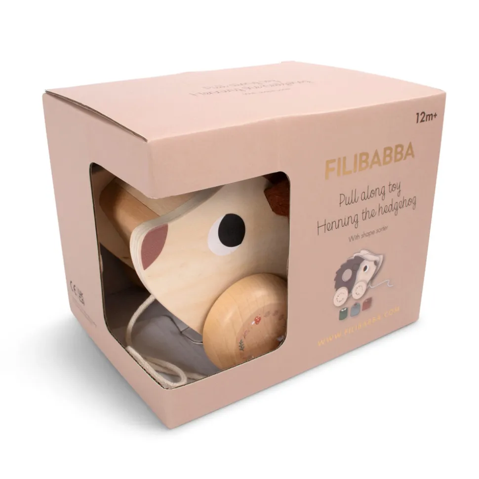 To af de mest elskede stykker babylegetøj; trække-dyret og puttekassen kombineret i én. Dette søde pindsvin vil elske at følge dig rundt i huset, og puttekassen vil helt sikkert holde dine små hænder beskæftiget i en rum tid.