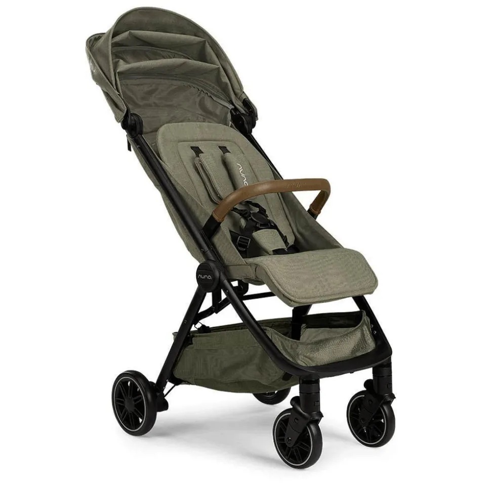 Luksus funktioner til by og rejser møder letvægts bekvemmelighed i denne fuldt udstyret og lækker designet klapvogn – TRVL fra Nuna. Sædet er trods det smalle udsende rummeligt, og med god plads til barnet. En integreret 5-punktsele sørger for barnet er spændt sikkert fast, og med MagneTech Secure Snap™ er det nemt at anvende selen da det er et magnetisk spænde der automatisk låses på plads. Ryggen kan justeres i trinløse position via snoretræk bagpå, og med fodstøtten der kan indstilles, er det nemt at finde en behagelig side-hvile-sove position til barnet. Kalechen har en ekstra solskygge som “vippes” frem for at give mere skygge til barnet, og med et peek-a-boo vindue kan man nemt holde kontakten til barnet. Sædet er i højere position end andre klapvogne, hvilket er en fordel hvis man f.eks. er på cafe/restaurant besøg, så kan barnet blot blive siddende i klapvognen, plus du får lettere tilgang til varekurven. Forhjulene på TRVL er drejbare, men kan låses hvis der er behov for det evt. på det lidt mere ujævne underlag. Når TRVL skal foldes sammen er det så nemt som at blinke med øjnene – blot med et tryk og lille skub på knappen ved styret så er den foldet sammen. Udover det er meget nemt at folde den så fylder den også ganske lidt, og er derfor nem at have med i bil, på rejsen, eller bare til opbevaring i hjemmet.