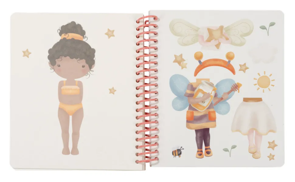 Hvad skal du have på i dag? Med Little Dutch Rosa & Friends påklædningsbogen er du en rigtig lille modestylist. Bogen indeholder 24 sider med billeder af blandt andet Rosa, Evi og Julia samt 12 sider med klistermærker af det smukkeste tøj og tilbehør, pigerne kan have på. Om du vælger en smuk lyserød prinsessekjole eller foretrækker at holde det enkelt – det er op til dig. Bogen har en praktisk spiralryg, er lavet af robust pap med de genkendelige Little Dutch designs og farver. Bogen er perfekt både derhjemme og til at have med!