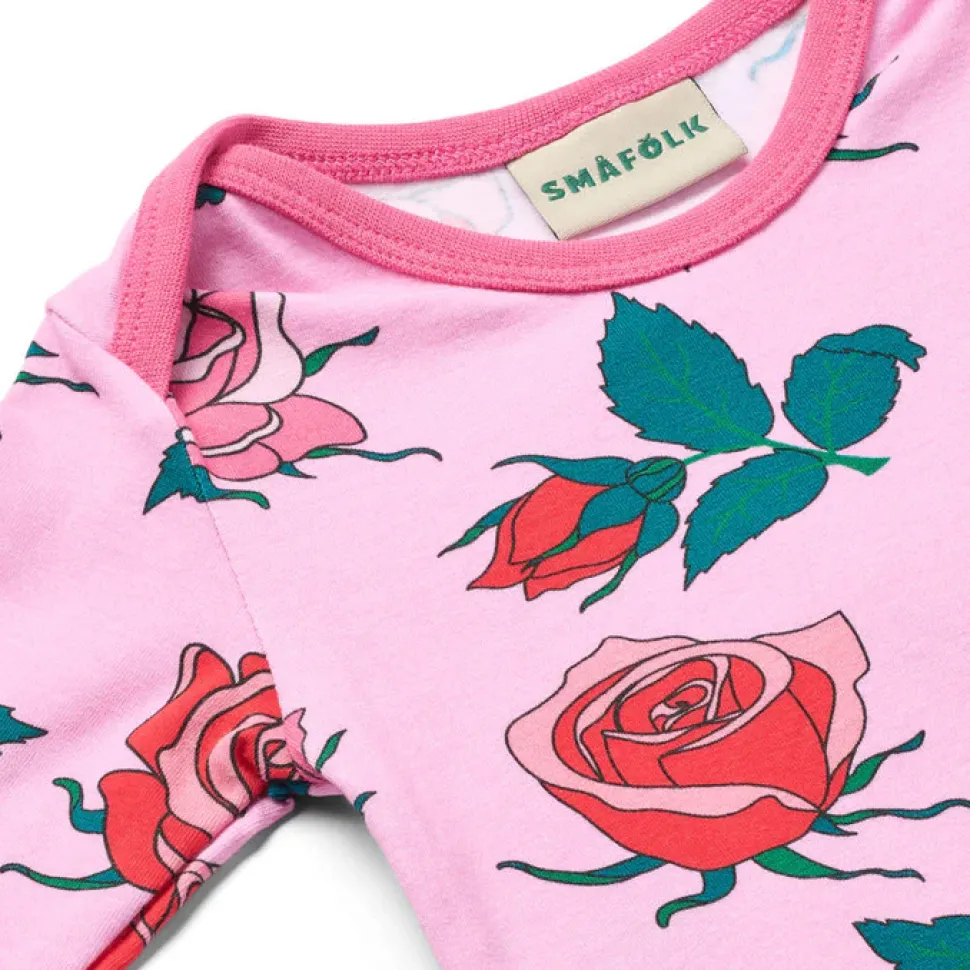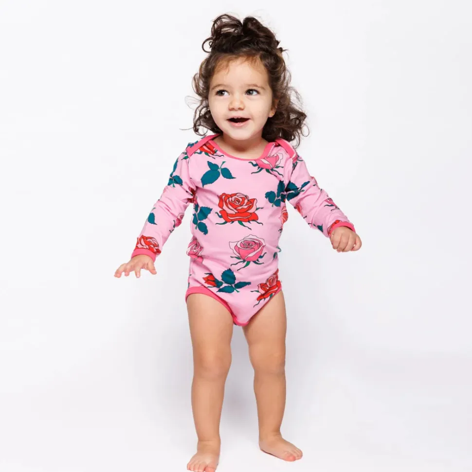 Blomst i skønhed med vores print af fantastiske lyserøde og røde roser, der tilføjer et strejf af elegance til ethvert outfit. Småfolks print er tegnet med fokus på glade farver, detaljer og historier. Vores bodyer er en god måde at tilføje personlighed til dit barns garderobe, samtidig med at dit barn kan føle sig komfortabel hele dagen.