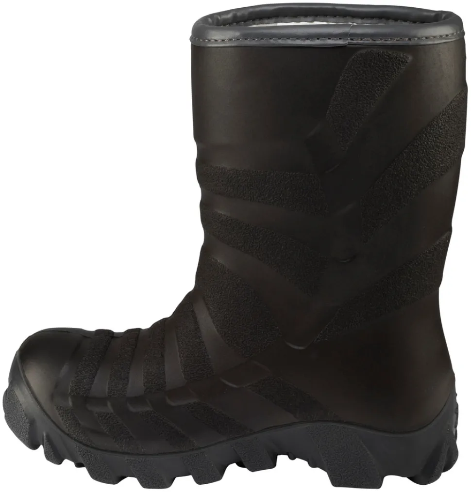 En moderne klassiker – Ultra er en strømlinet termostøvle til børn. Den er lavet af High Tech materialet PU, som holder fødderne varme uanset hvor koldt det bliver. Nem at få af og på og let at rengøre, Ultra er lavet i det fleksible polyurethan kaldet Elastopan®, der er 100% fri for PVC og består af millioner af mikroskopiske luftbobler. Det gør dem 40% lettere end PVC og gummi og gør dem 2.5 gange varmere end normale PU støvler. Kombineret med et uldblandingsfor holder Ultra fødderne varme ned til -20°C.