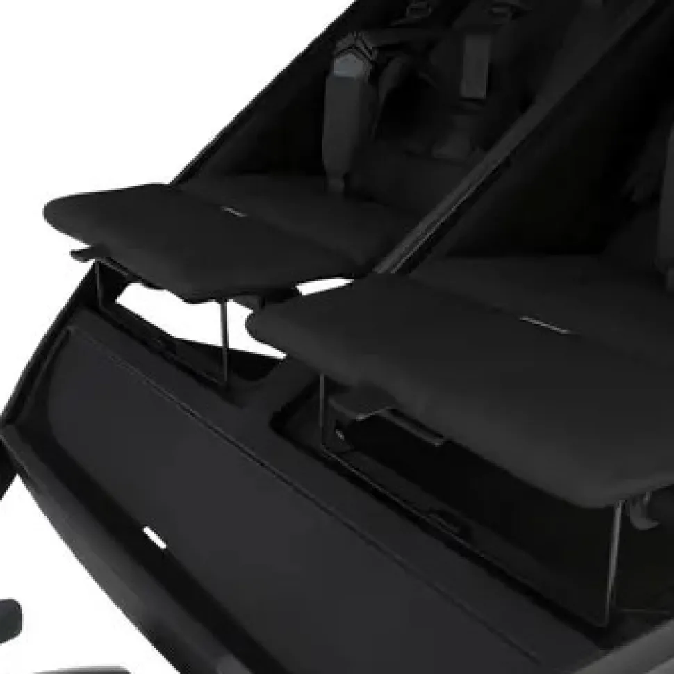 De justerbare, selvstændige sæder med trinløs tilbagelæning og indbygget fodstøtte sørger for, at den kan indstilles behageligt til det enkelte barn