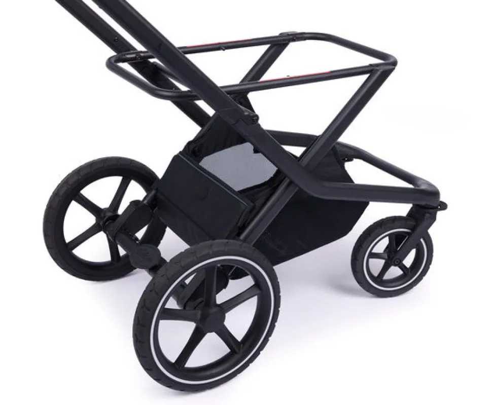 - Centreret monterings beslag giver let og enkel af- og på montering af barnevognskassen.