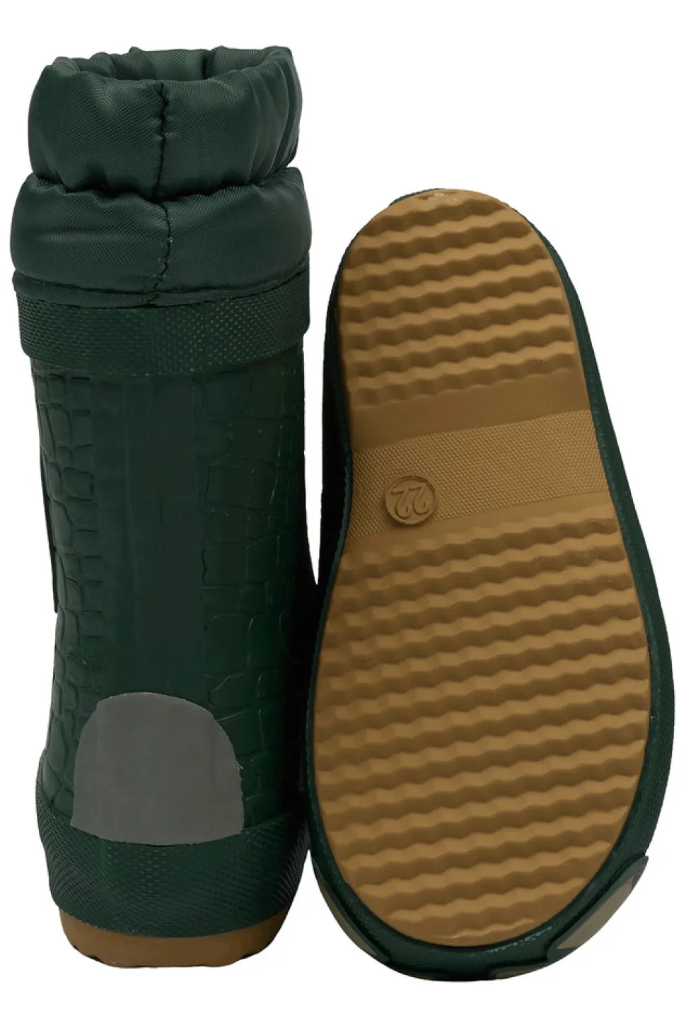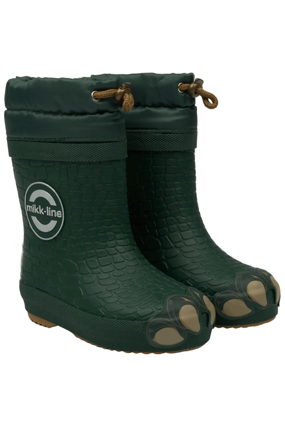 Disse mikk-line vintergummistøvler med en 3D dino patch, har lun foring og er lavet af naturlig gummi, og de er fri for ftalater. Gummistøvlerne er vandtætte, varme og praktiske til børn, der elsker at hoppe i vandpytter eller lege i vådt græs, sand eller sne.